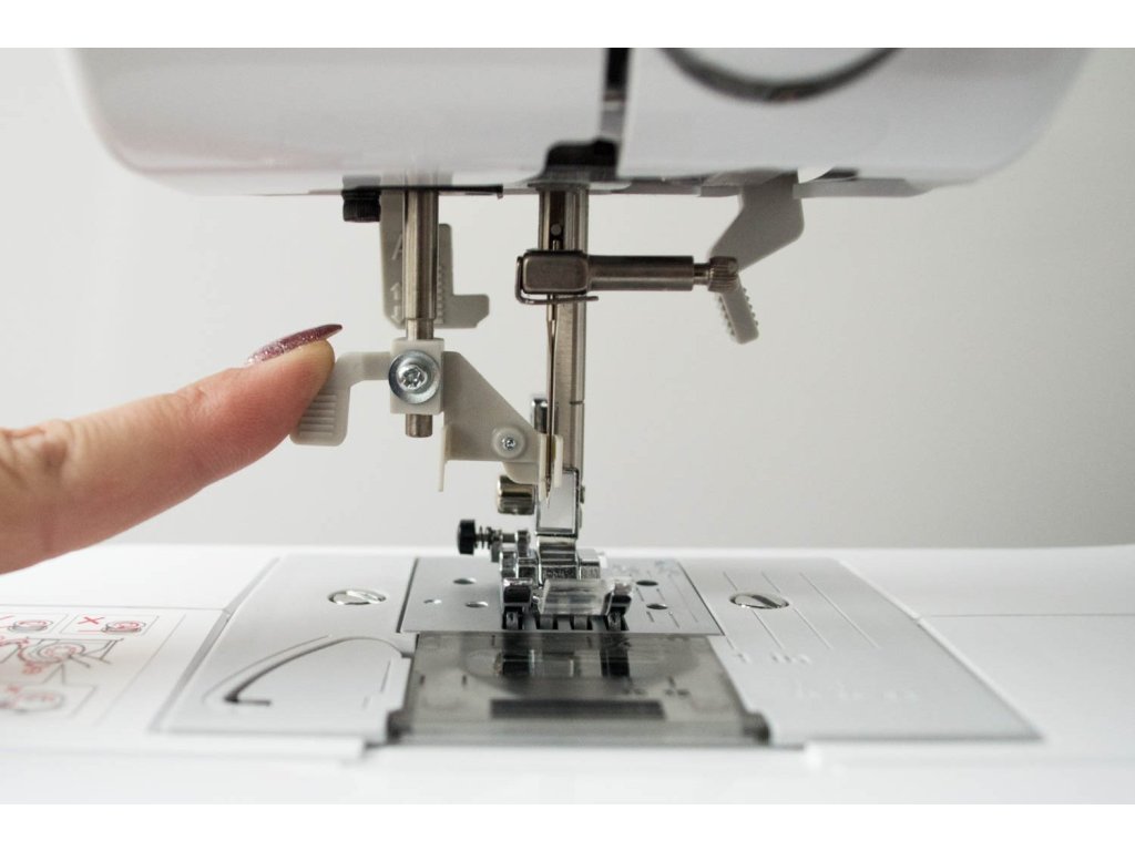 - ořezávač nitě na boku stroje - nepotřebujete nůžky