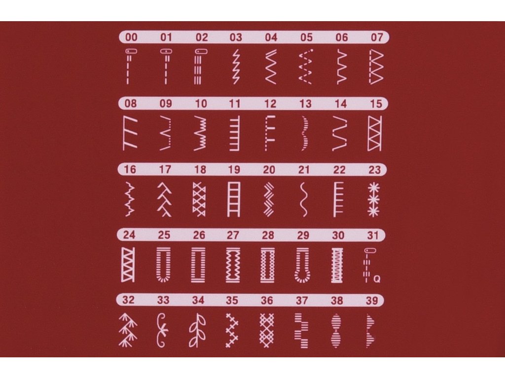 - 40 druhů stehů: klasické, strečové, overlockové, ozdobné, quiltovací, vyšívací