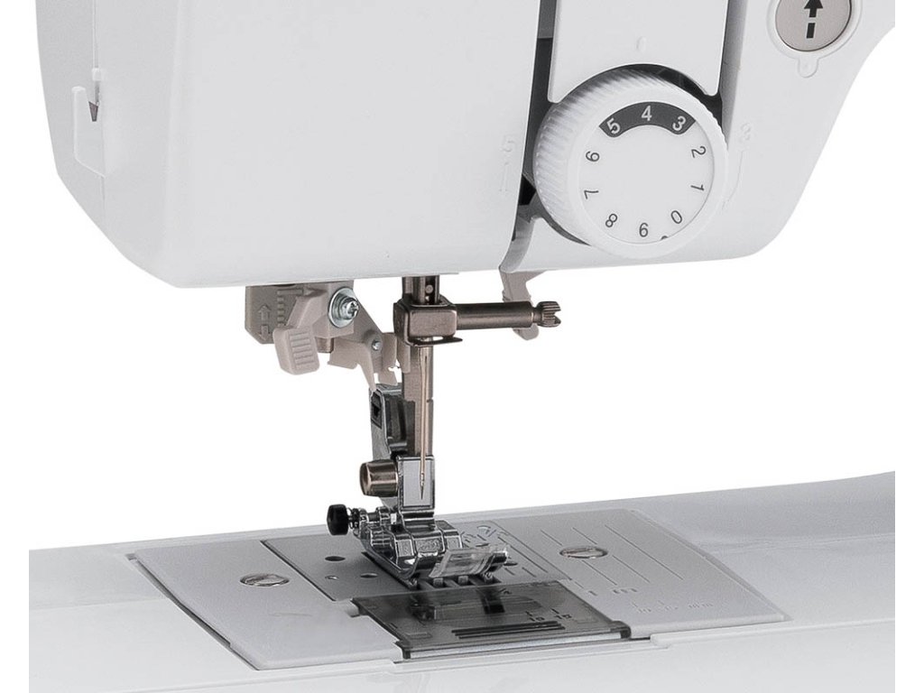 U stroje najdete bohaté příslušenství – 7 patek, se kterými ušijete téměř všechno, náhradní jehly, šroubovák, štěteček, páráček. Navíc dostanete ke stroji měkký kryt proti prachu, samozřejmostí je český návod, pedál a kabel.
