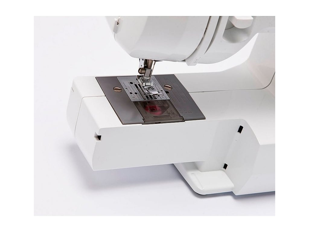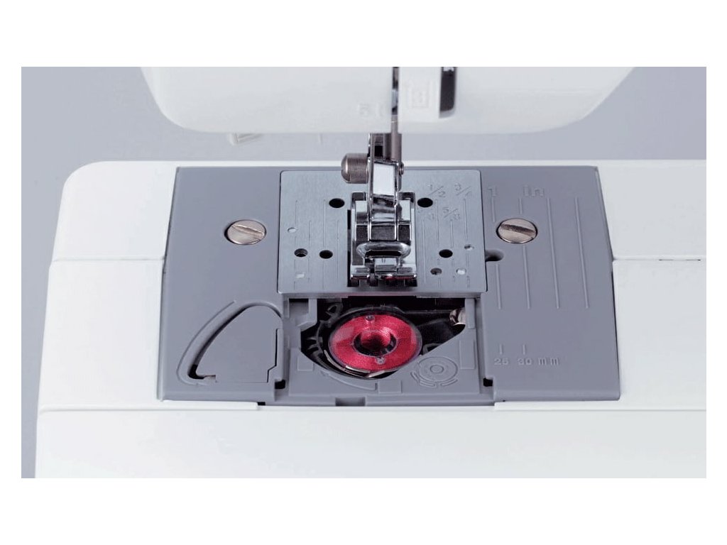 Stroj má moderní rotační chapač. Díky tomu je tichý, snadno se navléká i čistí. Navíc průhlednou krytkou vidíte, kolik nitě vám zůstává na cívce.