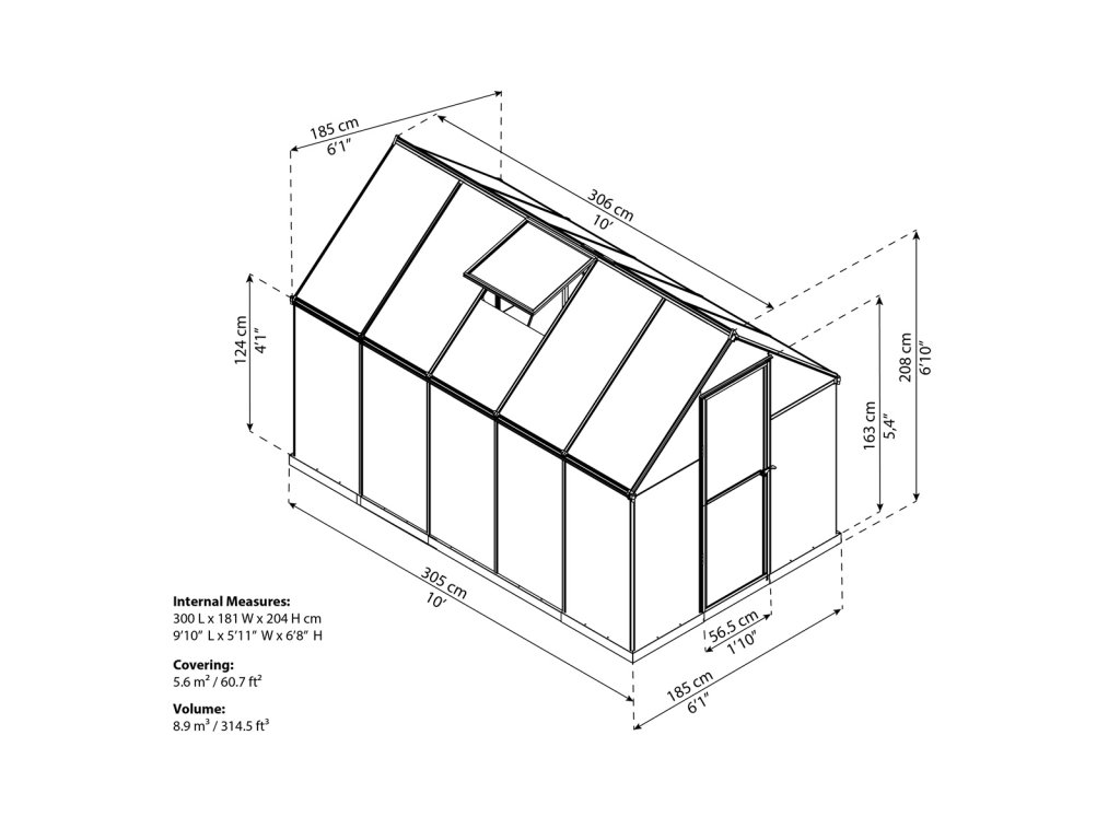 | Rozměry skleníku (D x Š x V): | 305 x 185 x 208 |