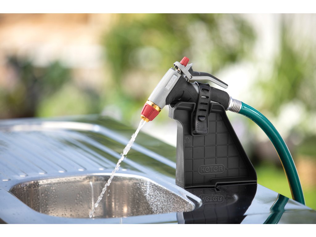 Poznámka: Vodovodní baterie není součástí balení. Je možné ji nainstalovat do předvrtané díry o průměru 35 mm. Součástí balení je držák na zahradní hadici.