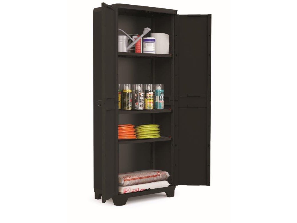 Skříň Keter Stilo High je navržena pro každodenní použití tam, kde potřebujete přehledně uskladnit různé nářadí, vybavení nebo potřeby. Díky plastové konstrukci je lehká, ale zároveň stabilní. Tři vnitřní police si můžete výškově přizpůsobit tak, aby vyhovovaly vašim potřebám.