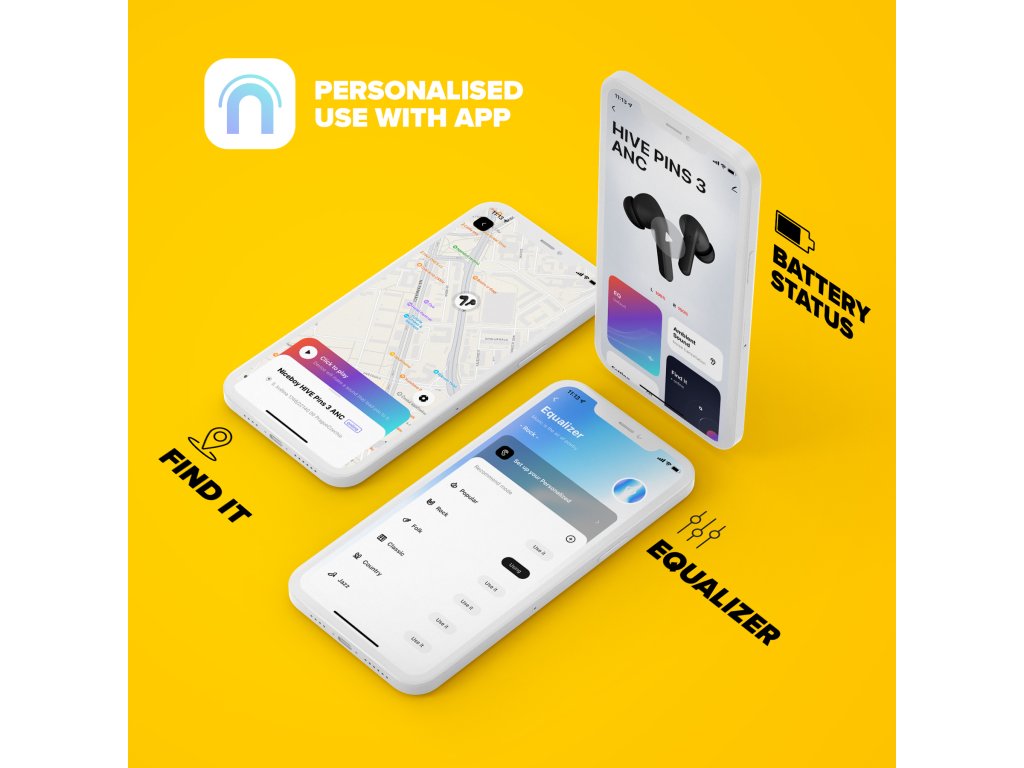 Chcete si nastavit zvuk podle svého gusta? S mobilní aplikací Niceboy ION je díky funkci ekvalizéru možné. A nejen to, s touto aplikací můžete vyhledat odložená sluchátka nebo zjistit, na kolik procent jsou sluchátka nabitá - uvidíte procenta pro každé sluchátko zvlášť.