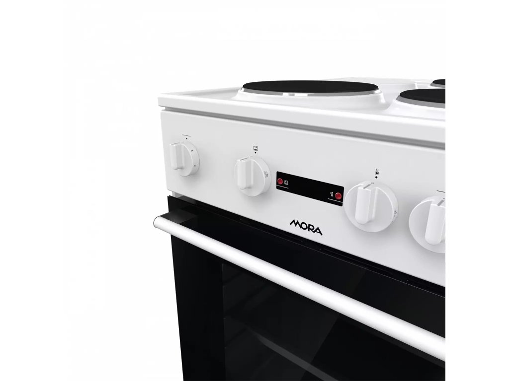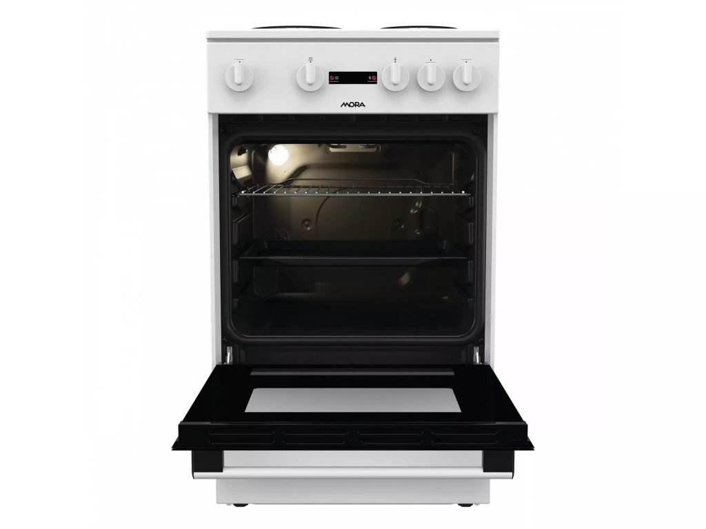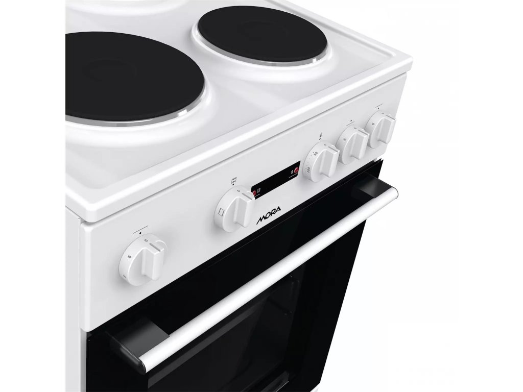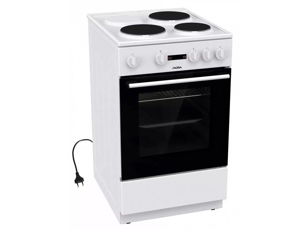 Elektrický sporák Sporák Mora E 2231 AW je vybaven elektrickou varnou deskou se 3 litinovými plotýnkami a klasickou troubou v energetické třídě A a objemem trouby 68 l.