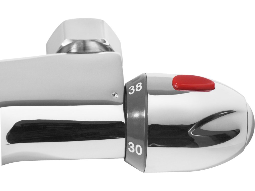 Jednoduchost obsluhy činí z termostatických baterií optimální řešení zejména ke sprchám a vanám. Při ovládání termostatu si nejprve zvolíme na stupnici požadovanou teplotu a nastavíme vyhovující průtok. Termostat automaticky upraví průtok teplé a studené vody pomocí zvláštní mechaniky, která pracuje na principu tepelné roztažnosti speciálních materiálů. Termostat vodu nijak neohřívá, pouze zajišťuje její správné smísení. Směšování v termostatických bateriích na požadovanou teplotu proběhne během několika málo vteřin.Bezpečnost je zajištěna pojistkou proti opaření, která je nastavena na 38°C, přičemž teplotu lze podle potřeby (i během používání) měnit. Vyšší teploty je možné nastavit až po odjištění pojistky proti opaření. Baterie hlídá zvolenou teplotu s přesností ± 1°C. Při výpadku studené vody se termostat zcela uzavře a ani tehdy tak nehrozí opaření horkou vodou.- ovladač teploty s bezpečnostní pojistkou při 38°C