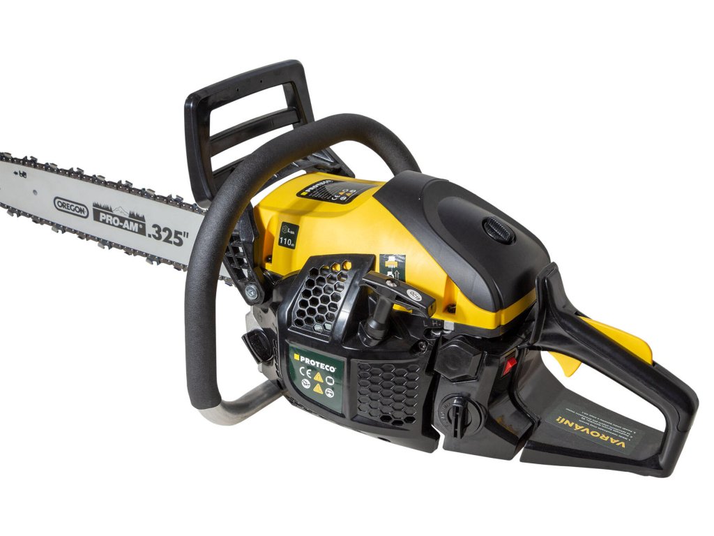 Řetězová pila benzínová Proteco je ideální pomocník pro řezání dřeva na zahradě, přípravu dříví do krbu, odvětvování, prořezávání, řezání palivového dříví apod. Zdařilá kombinace vysokootáčkového dvoutaktního motoru o zdvihovém objemu 50,8 cm ³ a výkonu 2,1 kW činí z motorové pily velmi oblíbeného komfortního a kompaktního pomocníka pro každého vášnivého kutila, či zahrádkáře. Motorová pila disponuje 45 cm lištou s 72článkovým řetězem Oregon pro plnění i těch náročnějších úkolů. Motor je sestavou silentbloků a plastových krytů nejen chráněn proti nárazu, ale i spolu s odstředivou spojkou maximální možnou měrou zbaven vibrací a hlučnosti. Optimální napnutí pilového řetězu lze snadno seřídit pomocí šroubu na boční straně motorové pily. Výhody a charakteristické znaky - Výkon 2,1 kW - Hmotnost motorové pily 7,5 kg - Lišta dlouhá 45 cm - Jednoválcový, dvoutaktní motor - Řetěz s 72 články - Řetězová brzda pro ochranu rukou - Automatické mazání řetězuPři platbě penězi je možné dostat zajímavou nabídku neboli akční cenu a tu Vám rádi uděláme když napíšete na info@megabike-cyklo.cz