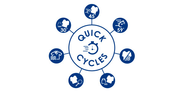 Sušička disponuje kompletní nabídkou rychlých cyklů od 30 do 90 minut. Jsou přitom navržené tak, aby vyhověly naprosto každému a ušetřily přitom maximum času i peněz bez ovlivnění kvality.