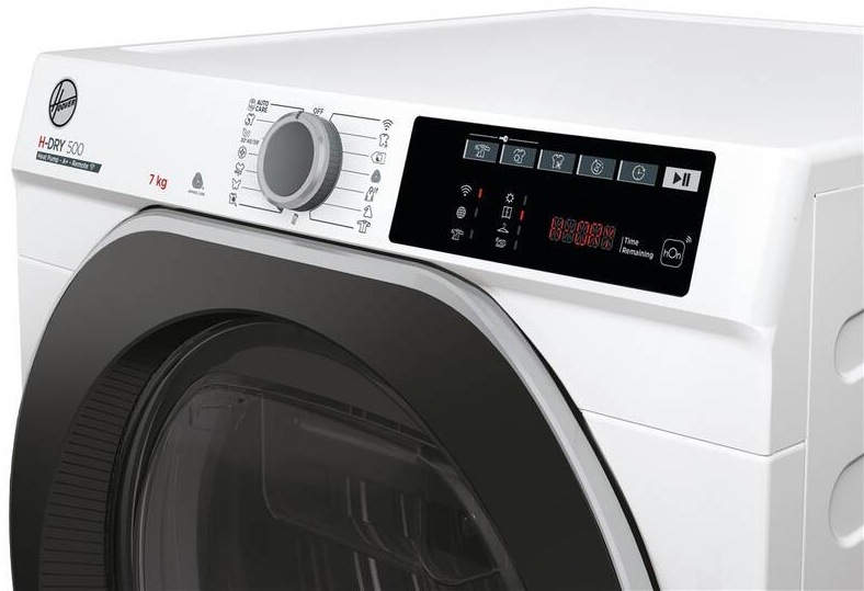 SLIM Sušička prádla Hoover ND4 H7A1TSBEX-S o rozměru 85 × 59,5 × 46,5 cm (49 cm s přesahem) je vybavena úsporným a odolným AC motorem, díky kterému se řadí do úsporné energetické třídy A+ s roční spotřebou energie 269 kWh a maximální úrovní hlučnosti 67 dB. Pro ovládání je k dispozici dotykový displej. Prostřednictvím Wi-Fi a Bluetooth připojení a aplikace hOn se vám otevírá přístup k exkluzivnímu světu, jak vylepšit sušící výkon. Získáte mnoho dalších cyklů, návrhy ohledně ideálního nastavení nebo vzdáleně zkontrolujete stav spotřebiče.