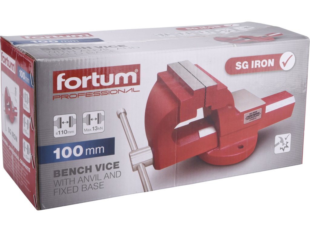 - Svěrák je vyroben ze speciální tvárné litiny s kuličkovým grafitem (SG Iron), díky čemuž má vynikající tažnost a svou houževnatostí převyšuje svěráky vyrobené z klasické šedé litiny. Vlastnostmi a kvalitou se tak řadí hned za svěráky kované.