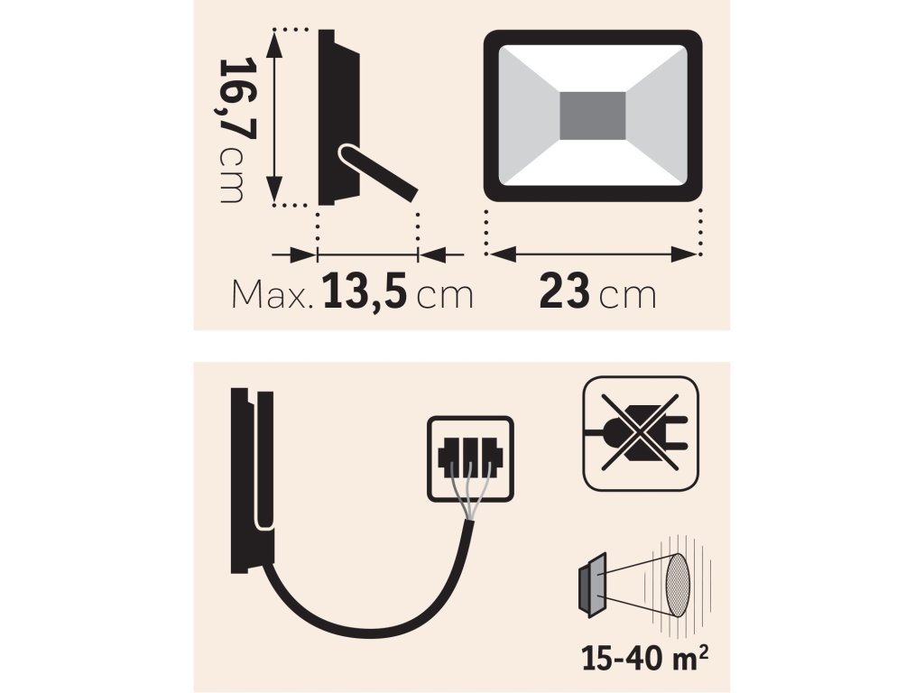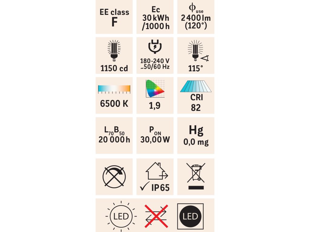 LED reflektor je zdrojem příjemného bílého světla, které kvalitou odpovídá dennímu světlu. LED reflektory jsou díky nízké spotřebě energie, odolnosti proti dešti, prachotěsnosti, širokoúhlému osvícení plochy, možnosti nastavení sklonu, bezúdržbovosti, mechanické odolnosti a dlouhé životnosti (více než 30 000 hod.) vhodné pro dlouhodobé osvětlení budov, venkovních a pracovních prostor nebo reklamních ploch.- krytí IP65 zajišťuje odolnost vůči dešti a prachu
