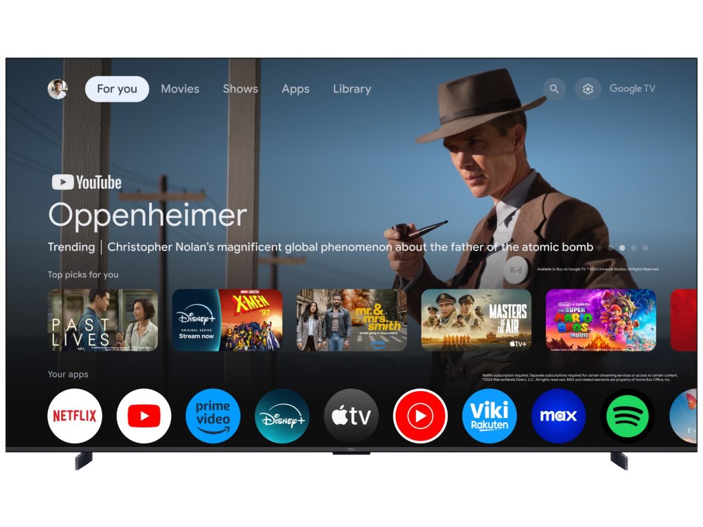 Televize – Google TV, QLED, 249cm, 4K Ultra HD, 100/120 Hz (144 Hz – herní režim), HDR10+, Dolby Vision, antireflexní obraz, DVB-T2/S2/C, 4× HDMI, 1× USB, LAN, WiFi, Bluetooth, DLNA, Chromecast, Miracast, HbbTV 2.0.3, herní režim, hlasové ovládaní, Google Assistant, Apple Airplay 2, párování s mobilním zařízením, Oneplay, VESA 600×500, repro 40 W, DTS:X, DTS Virtual:X, Dolby Atmos, Prostorový zvuk, vestavěný subwoofer, energetická třída EDoplňkové parametry