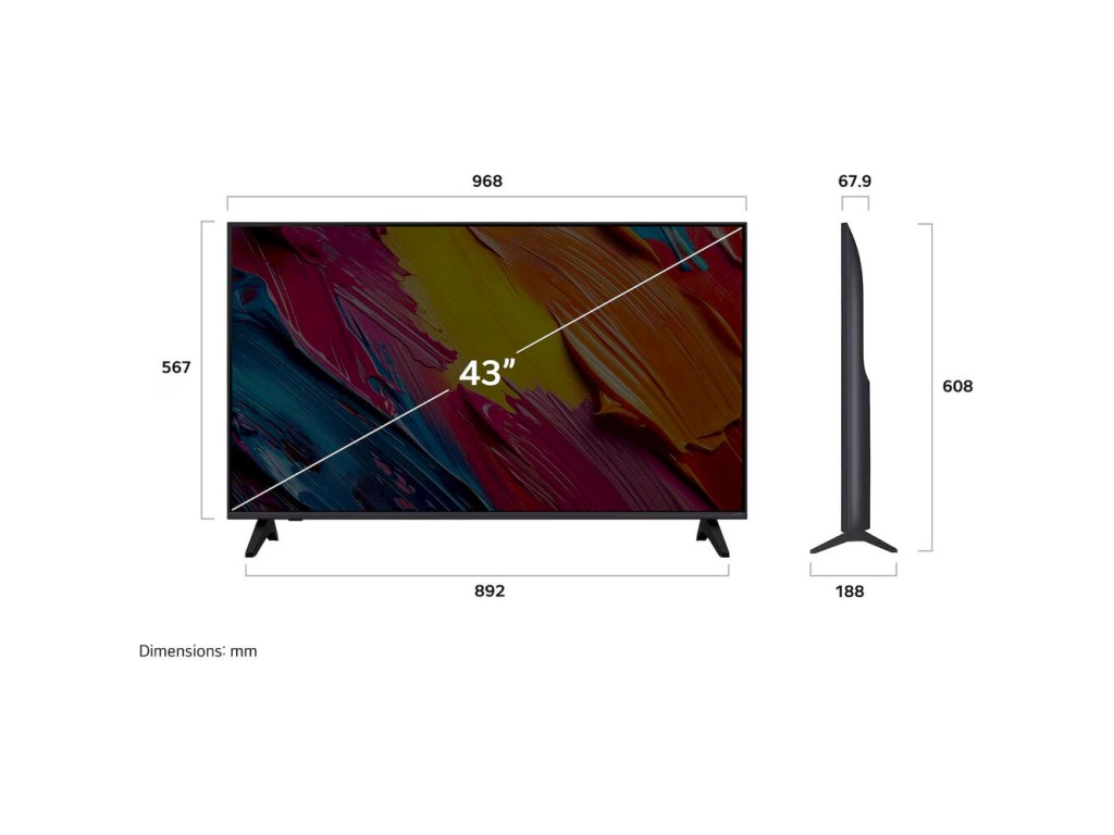 | Rozměry bez podstavce (V x Š x H): | 660 mm (V) x 968 mm (Š) x 142 mm (H) |