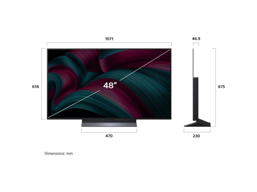 | Rozměry bez podstavce (V x Š x H): | 618 mm (V) x 1 071 mm (Š) x 47 mm (H) |