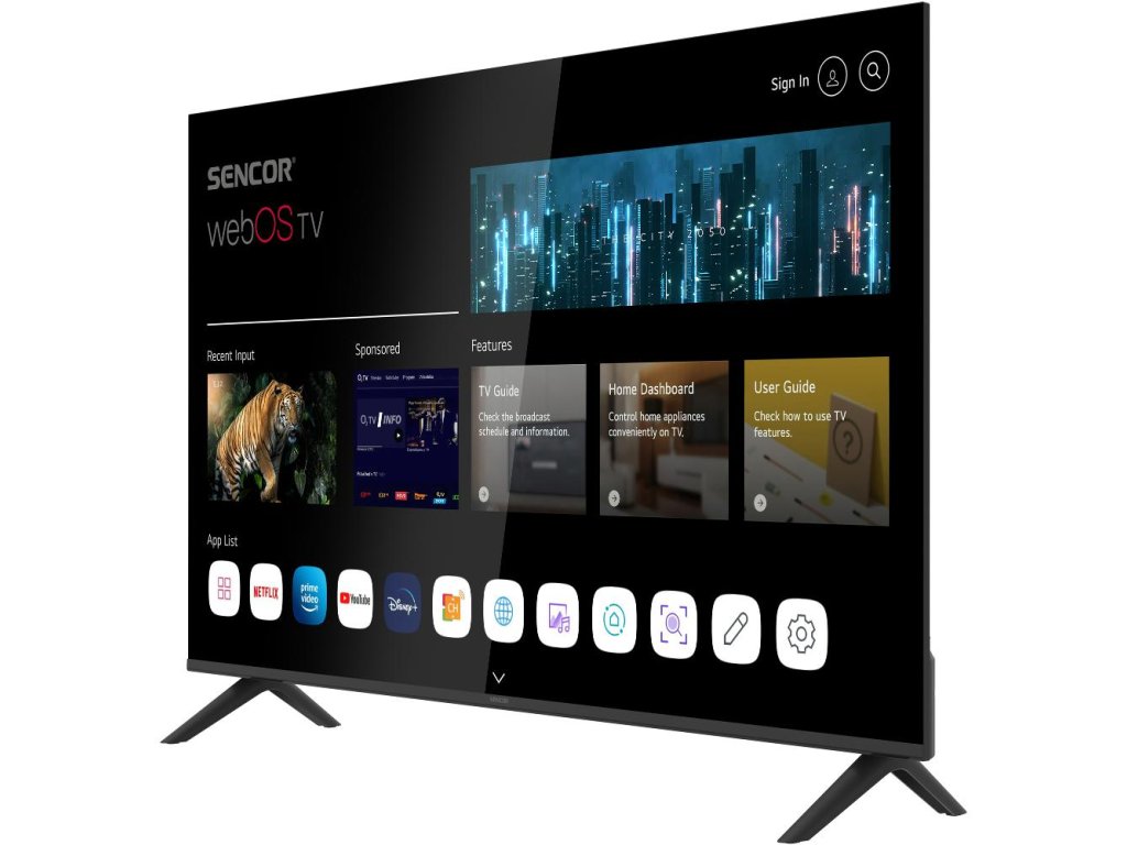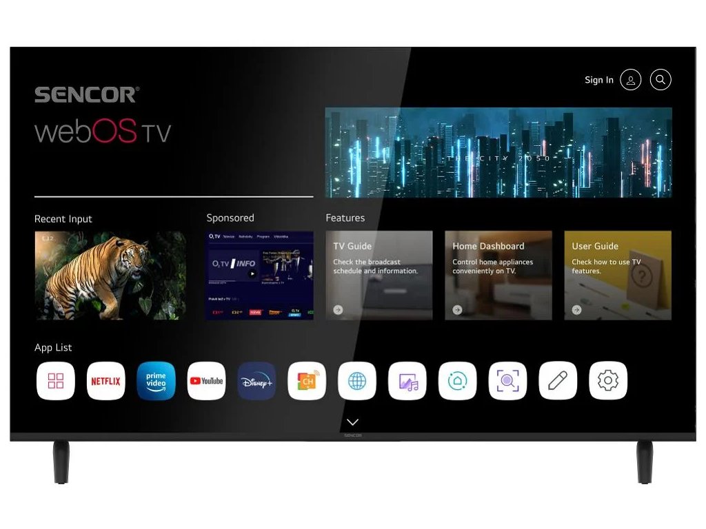 Systém WebOS, zkušenostmi ověřený operační systém vyvinutý společností LG, je velice uživatelsky komfortní, svižný a intuitivní. Pokud jde o zastoupení aplikací, ty nejdůležitější v tomto operačním systému nechybí. Rovněž máte přístup do filmoték Netflix či Amazon Prime video a nechybí ani přístup ke službám IPTV poskytovatelů. Systém běží na čtyř jádrovém procesoru ARM Cortex.