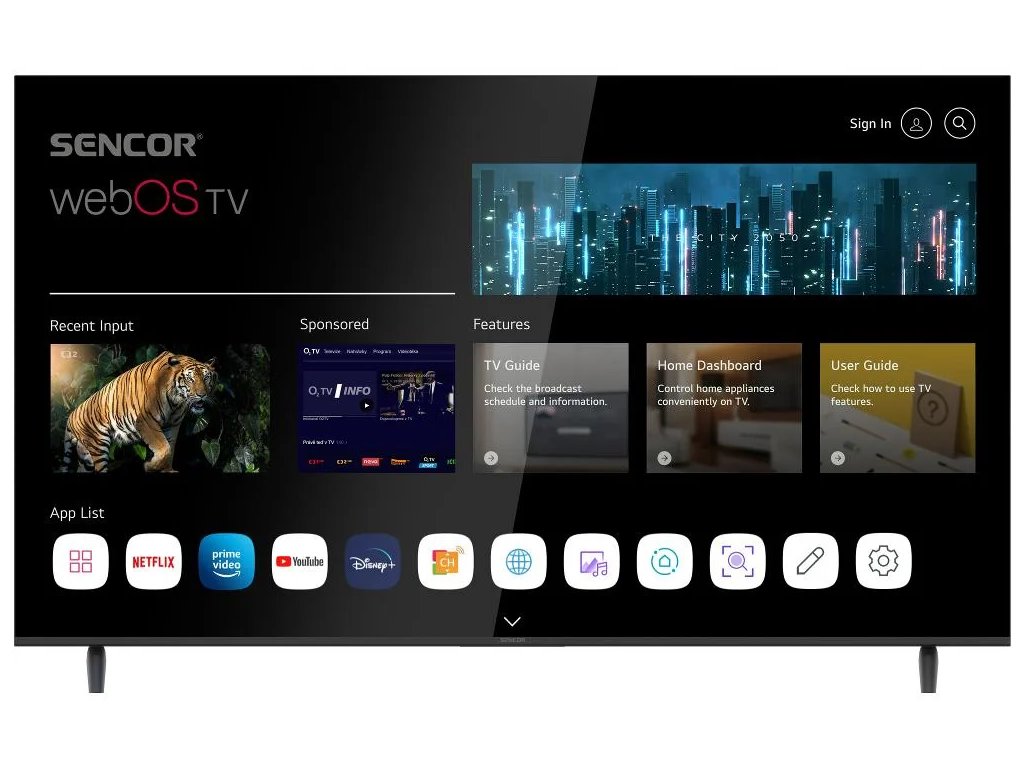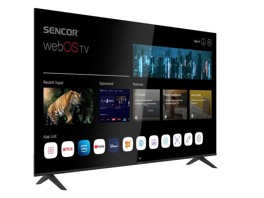 Systém WebOS, zkušenostmi ověřený operační systém vyvinutý společností LG, je velice uživatelsky komfortní, svižný a intuitivní. Pokud jde o zastoupení aplikací, ty nejdůležitější v tomto operačním systému nechybí. Rovněž máte přístup do filmoték Netflix či Amazon Prime video a nechybí ani přístup ke službám IPTV poskytovatelů. Systém běží na čtyř jádrovém procesoru ARM Cortex.