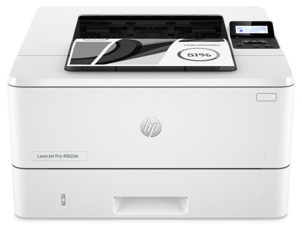Černobílá laserová tiskárna HP LaserJet Pro 4002dn je navržena pro vysokou produktivitu v administrativních provozech a podnikové sféře. Dosahuje rychlosti tisku až 40 stran za minutu a ve spojení s funkcí automatického oboustranného tisku efektivně šetří čas i peníze na provoz. Díky kompaktním rozměrům se snadno vměstná do pracovního prostoru. S pomocí aplikací HP Smart a Apple AirPrint můžete tisknout v spolupráci s mobilními zařízeními nebo z cloudu. Praktický USB host port umožňuje také přímý tisk z přenosných USB médií.
