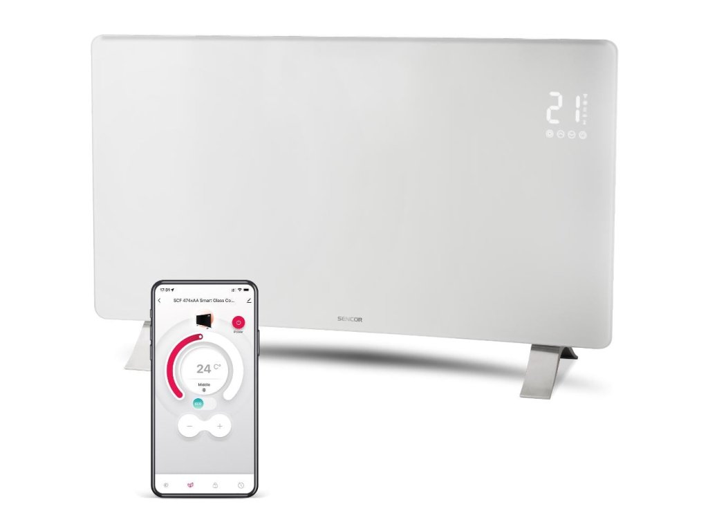 Chytrý skleněný konvektor Wi-FiSencor SCF 4740WH