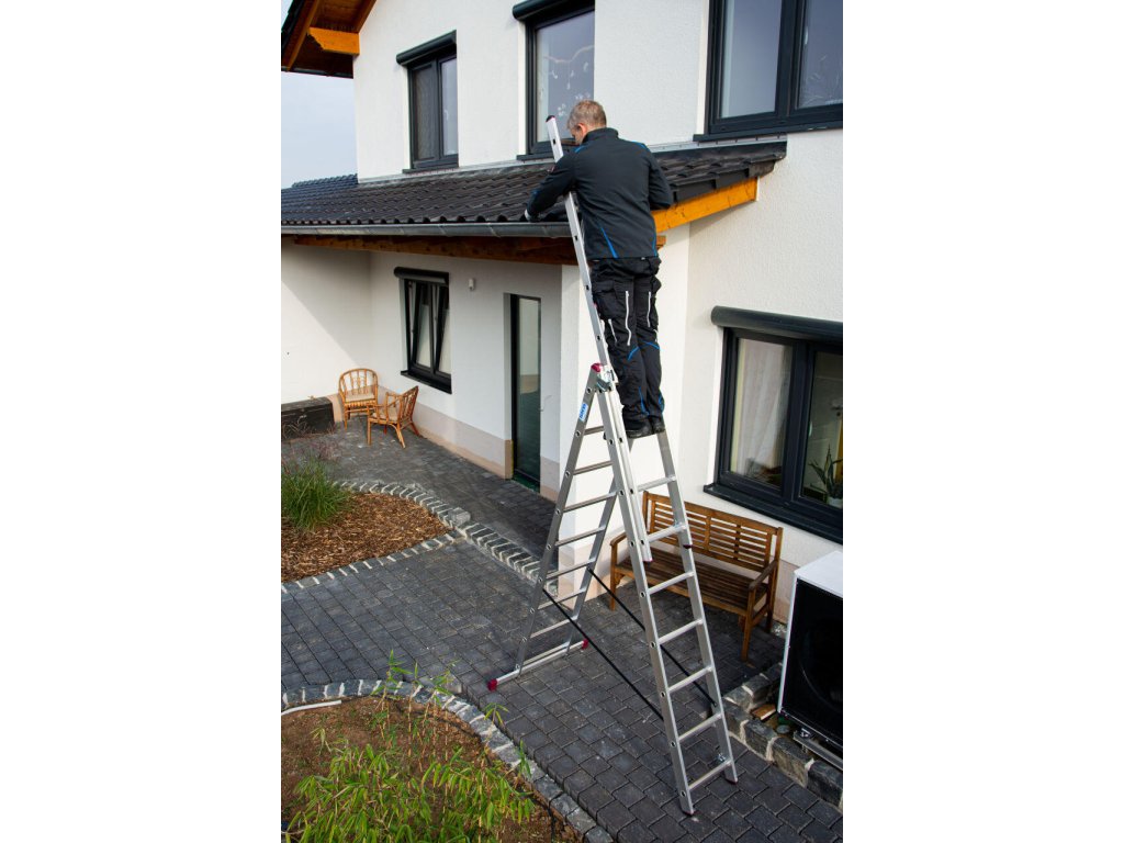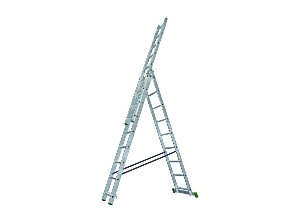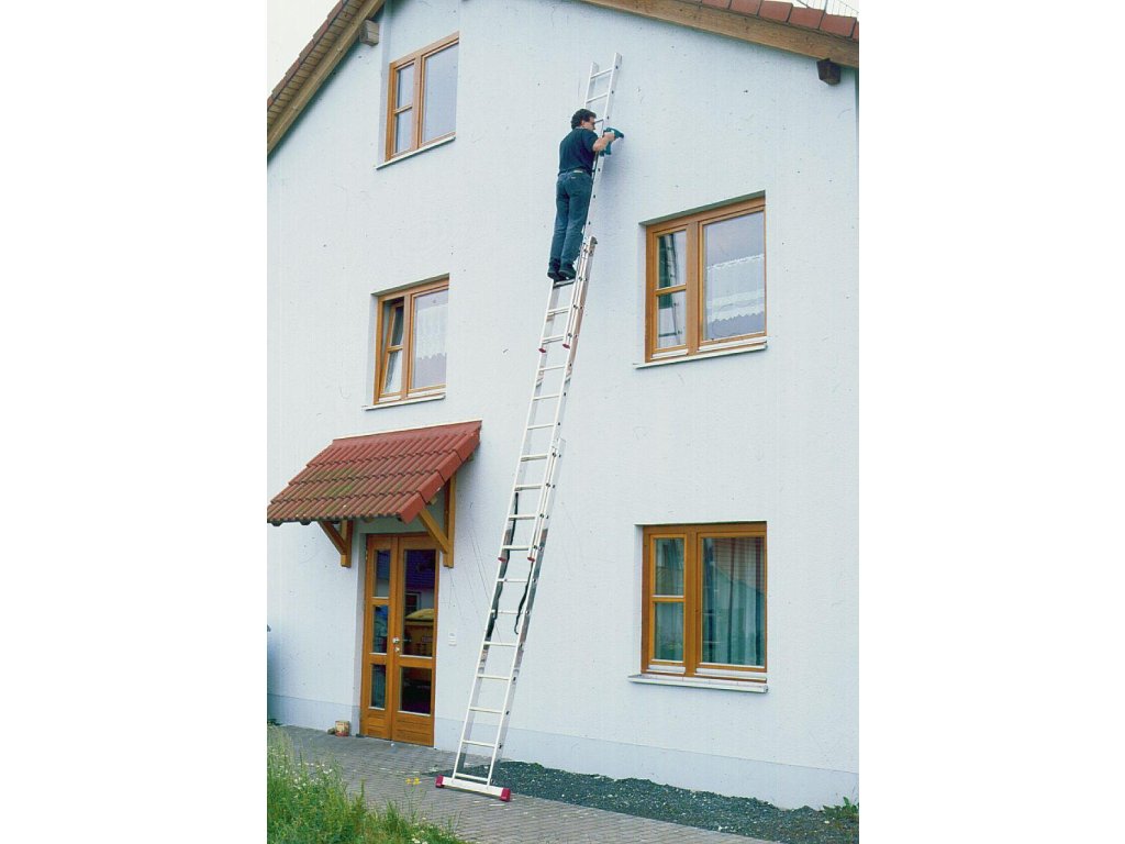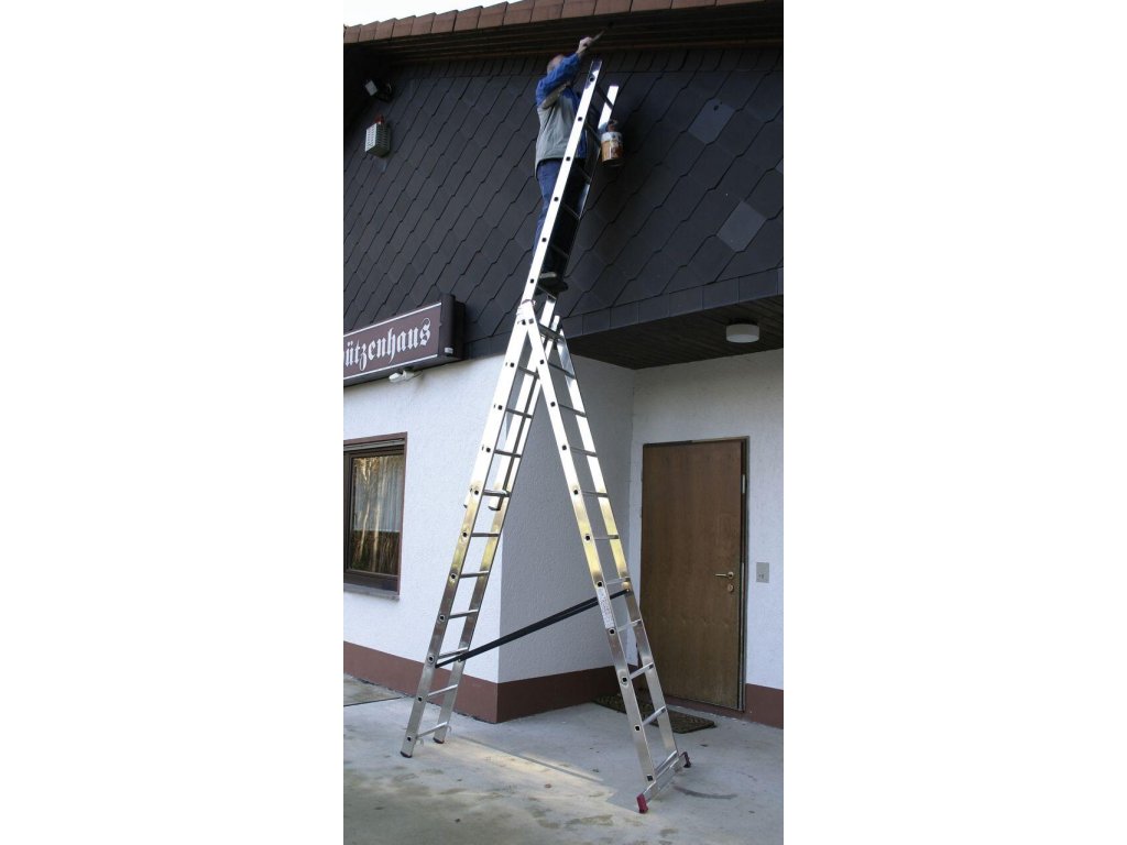 Certifikovaný trojdílný hliníkový žebřík pro mnohoúčelové využití. Je možné jej použít jako opěrný žebřík, štafle nebo výsuvný žebřík. Certifikováno i pro profesionální účely. UPOZORNĚNÍ - Vzhledem k délce žebříku a bezpečnostním normám nelze 3 díl žebříku odpojit! Výhody a charakteristické znaky - Příčle s profilováním po obvodu - Ocelové vodící profily umožňují snadné vysouvání jednotlivých částí žebříku - Široká stabilizační traverza zajišťuje bezpečné stání - Protiskluzové patky - délka stabilizační tyče 995 mm - Bezpečnostní hákové pojistky proti samovolnému vysunutí částí žebříku při transportu a používání - Maximální zatížení 150 kg - Certifikace EN 131 pro domácí i profesionální použití Rozměry v praxiPři platbě penězi je možné dostat zajímavou nabídku neboli akční cenu a tu Vám rádi uděláme když napíšete na info@megabike-cyklo.cz