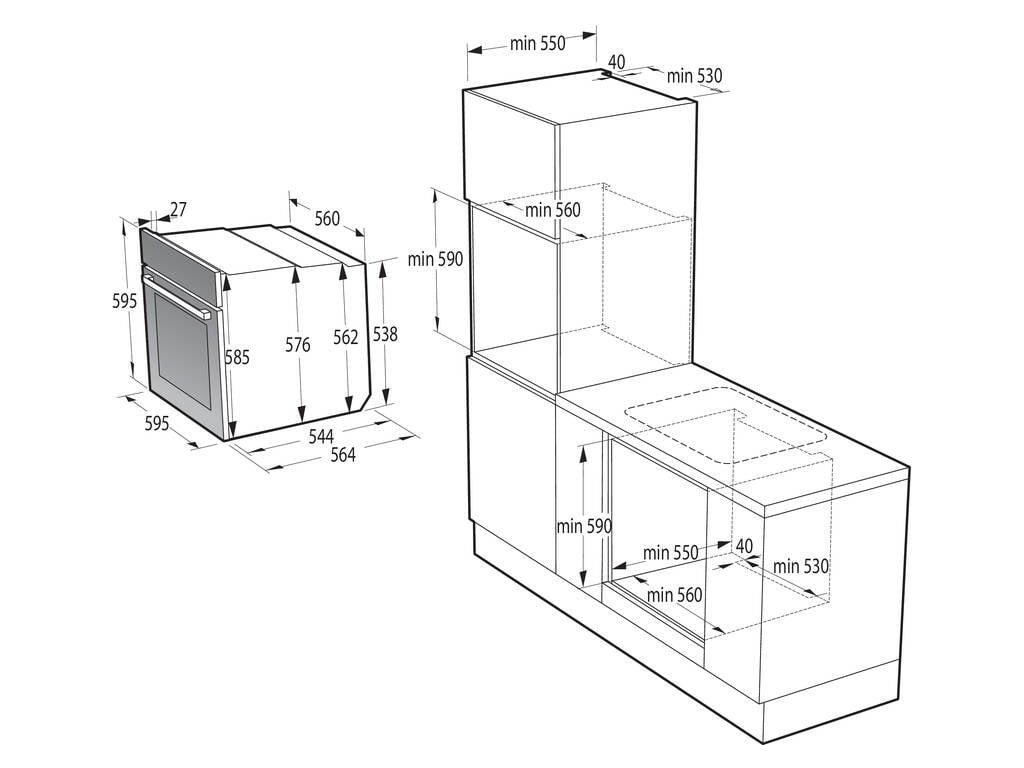 Minimální hloubka otvoru pro instalaci: 550 mm