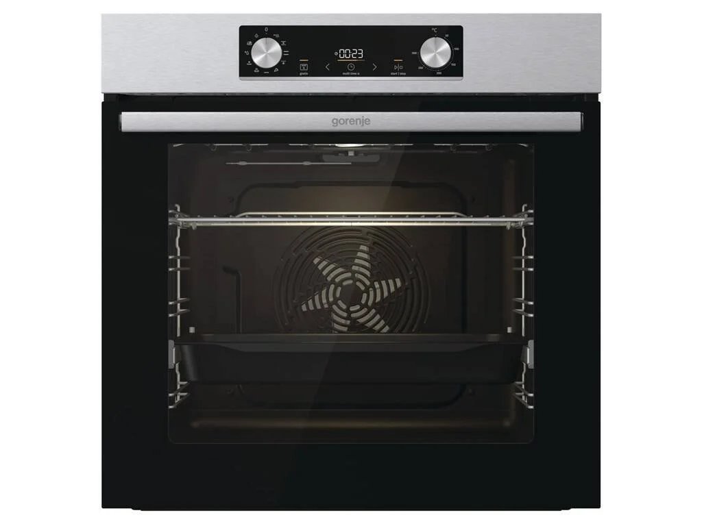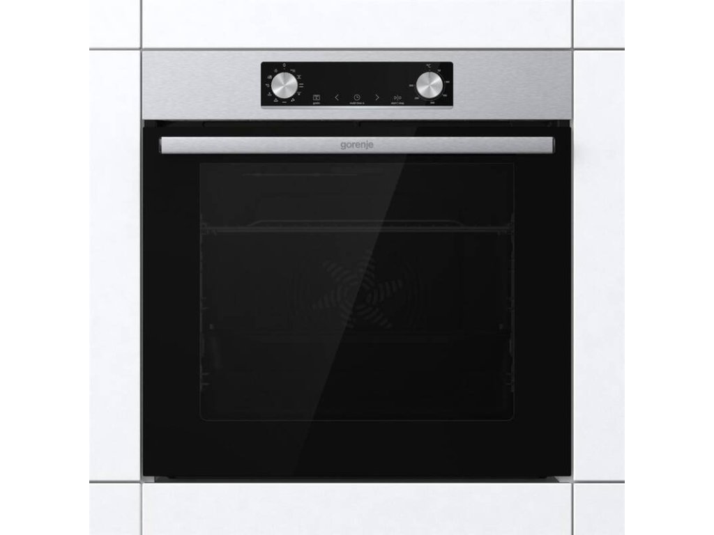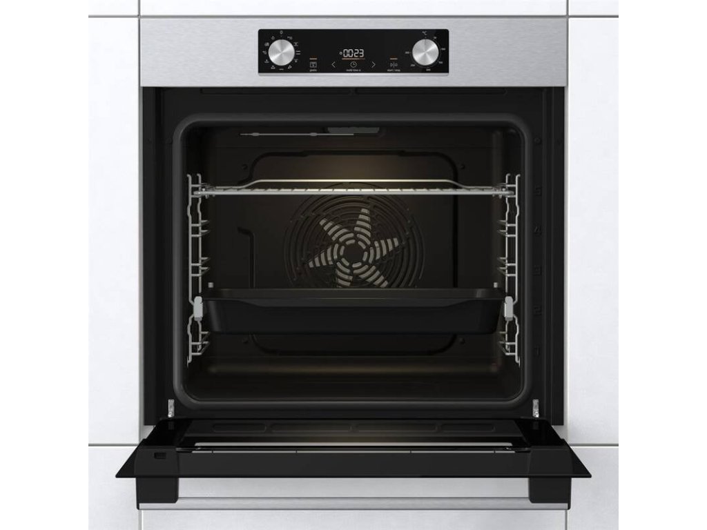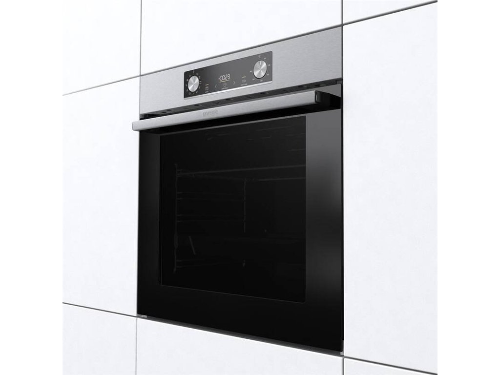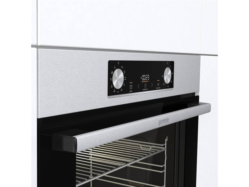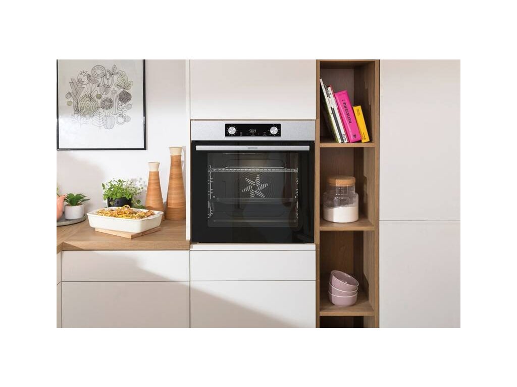 vestavná trouba s přídavnou párou • energetická třída A • objem 77 l • horkovzdušná trouba s horním a dolním topným tělesem • teleskopické výsuvy • displej • vodní (parní) čištění • funkce Horký vzduch – zajistí perfektní distribuci tepla do všech úrovní trouby • funkce FrozenBake – efektivní program pro mražená a hotová jídla • funkce PerfektGrill – nejlepší výsledky pečení díky kombinaci dvou topných těles • funkce Gratinování – zajistí perfektně upečenou krustu na vašem pokrmu • bezpečnostní prvky: chladná dvířka • V × Š × H: 59,5 × 59,5 × 56,4 cmPečení s radostí a extra objemem, to je Gorenje Essential BO6735E05X s neuvěřitelnou kapacitou 77 litrů. Užijte si inovativní řešení a víceúrovňové pečení, kdy je využita celá šířka trouby s plochou na plechu 1 360 cm2. Vyzkoušejte nové technologie a funkce, které si rychle oblíbíte. Trouba disponuje výkonem 2,5 kW a rychlým nahřátím do 5 minut. Vybírat můžete z 9 programů včetně funkce StepBake, kterou si sami naprogramujete dle své potřeby.