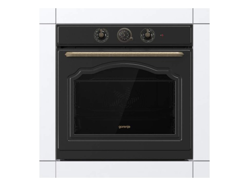Vestavná elektrická trouba Gorenje BOS67372CLB v energetické třídě A o objemu 77 litrů zaujme retro designem v černém provedení.Má funkci AirFry pro zdravější fritování, zavírání GentleClose, program GentleBake, FrozenBake, Pizza, čištění AquaClean a systém chlazení dvířek CoolDoor.