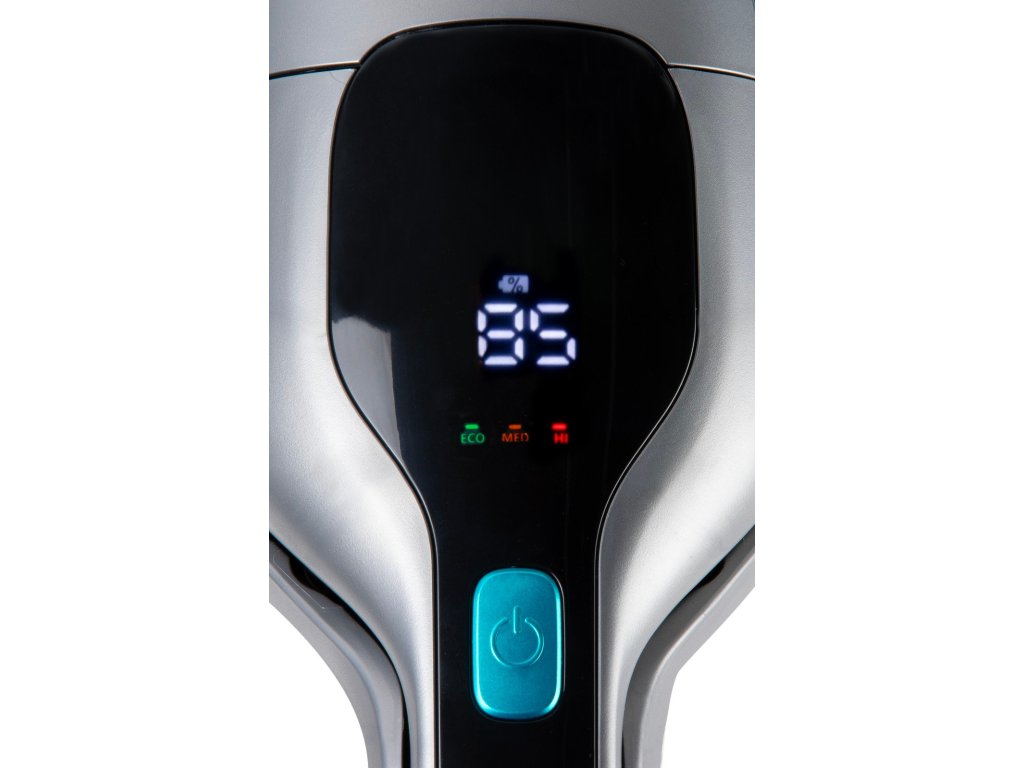 Li-Ion baterie s napětím 21,6 V nabízí až 55 minut provozu a doba nabíjení je 4 až 4,5 hodiny. Praktický LED displej zobrazuje úroveň sání a procenta baterie, takže vždy víte, kolik energie ještě zbývá.
