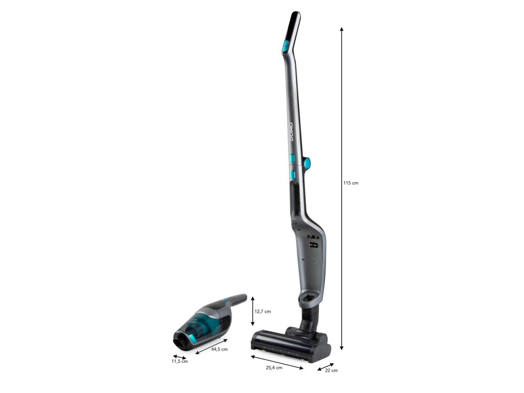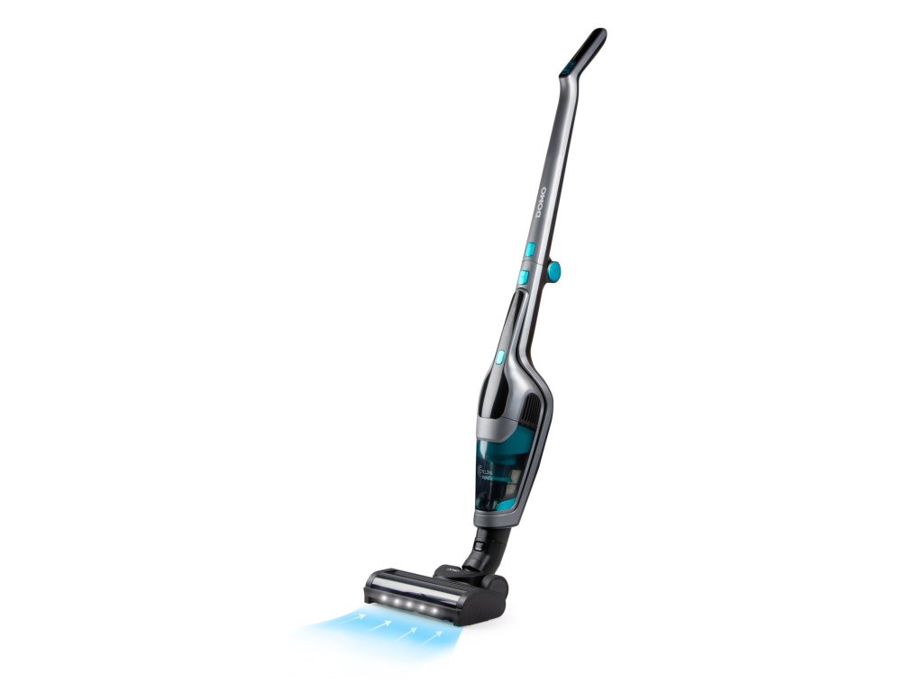 Akumulátorový vysavač DOMO 2v1 DO249SV je výkonný akumulátorový vysavač, který kombinuje tyčový vysavač s odnímatelnou ruční jednotkou. Je vybaven manévrovací podlahovou hubicí s LED osvětlením.Tento bezsáčkový akumulátorový vysavač se třemi nastaveními rychlosti, příkonem 130 W a sáním 9 kPa zajišťuje důkladný úklid.