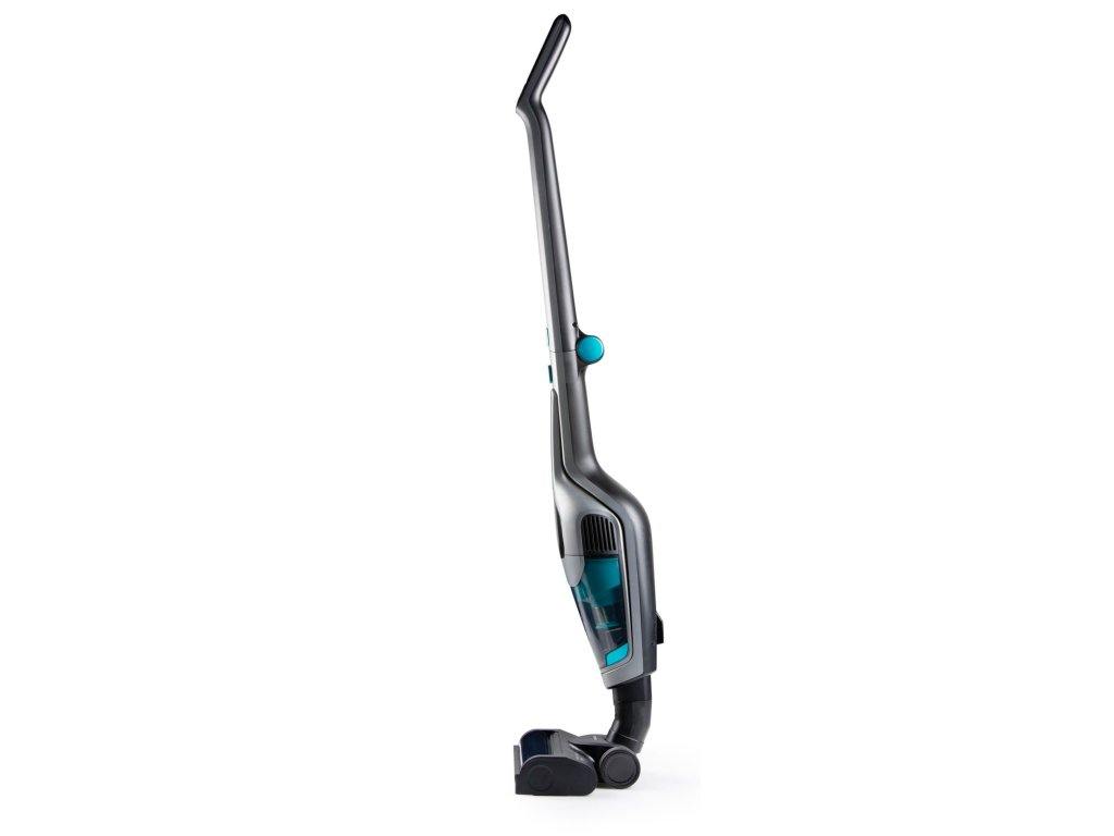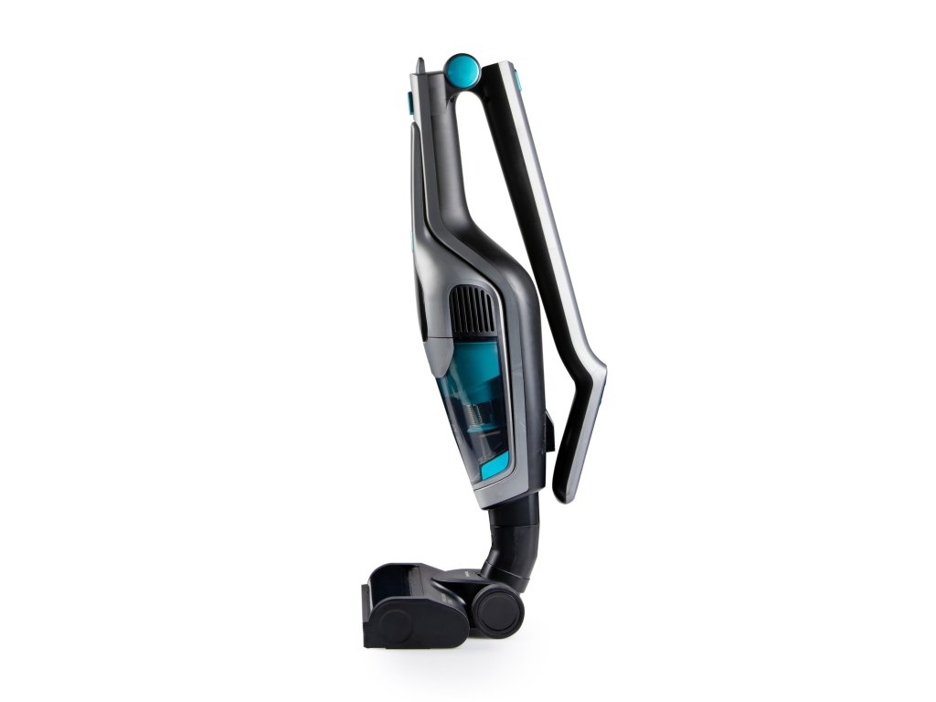 Volně stojící tyčový vysavač: zůstává samostatně ve vzpřímené poloze s parkovacím zámkem, bez nutnosti montáže na zeď