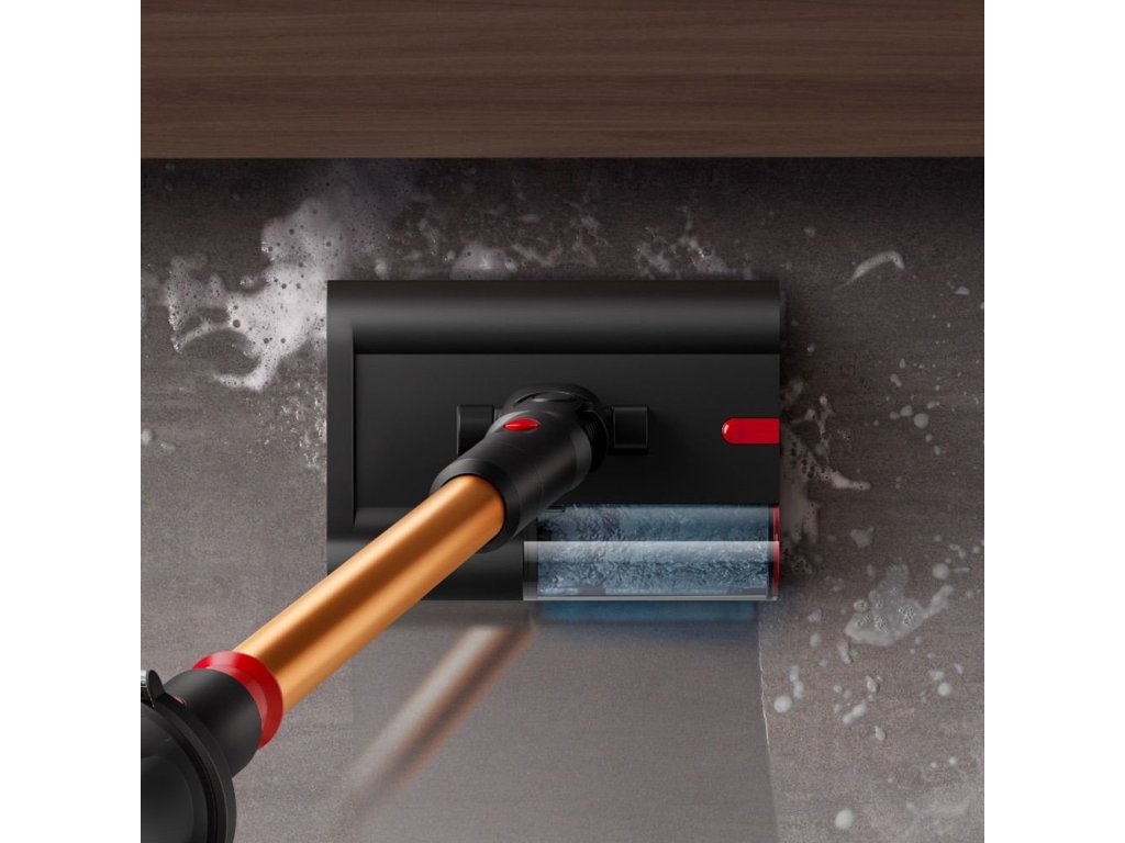 Podlahová hubice Dyson Submarine s mokrým rotačním kartáčem odstraňuje rozlité tekutiny z tvrdé podlahy.