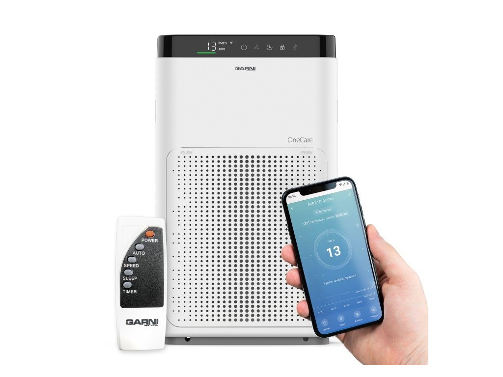 Chytrá čistička vzduchu, model GARNI 15T OneCare, zajistí ve vaší domácnosti nebo kanceláři pomocíšestistupňového filtračního systému a zabudovanému čidlu na měření pevných částic PM2.5 čistý a zdravý