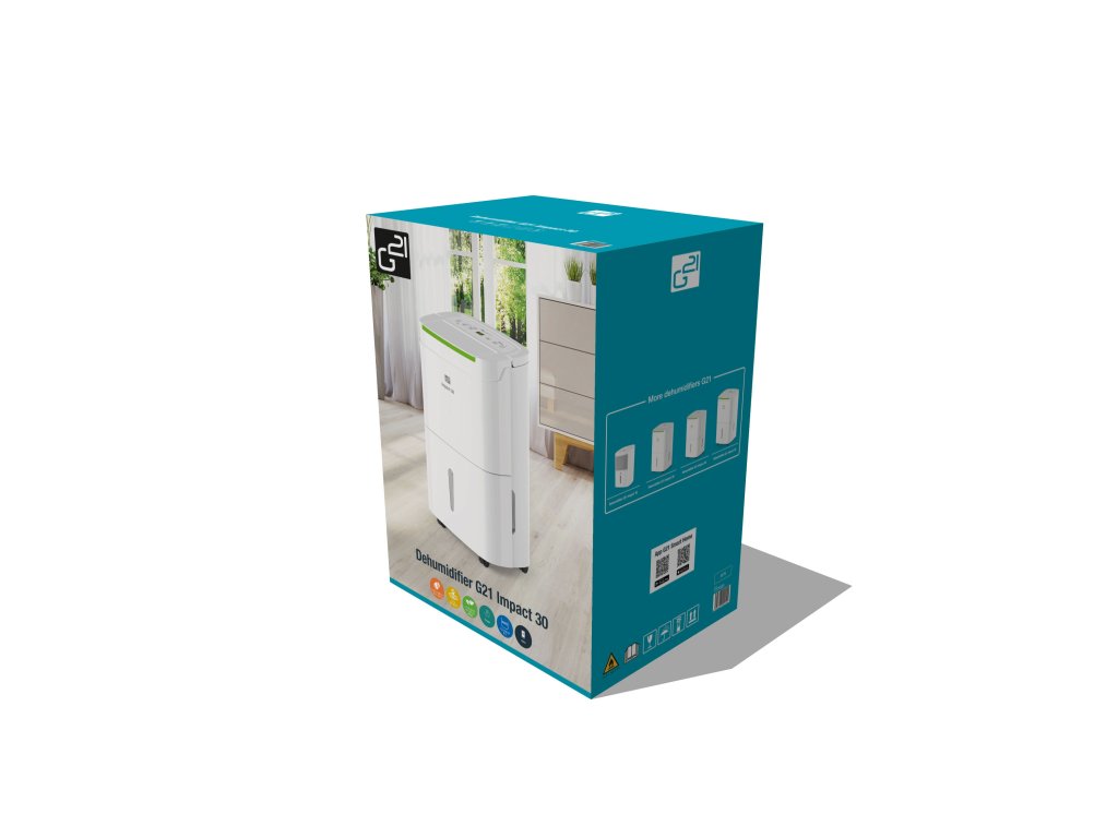 Odvlhčovač vzduchu G21 Impact 30 od české značky G21 má kapacitu 30 l za 24 hodin. Je vybaven 5l, dostatečně velkou nádržkou na kondenzát s průhledným indikátorem stavu. Pozorovat jej však ani nemusíte – odvlhčovač se při naplnění nádržky sám vypne. Odvlhčovač používá ekologické chladivo R290, které nepoškozuje ozónovou vrstvu.