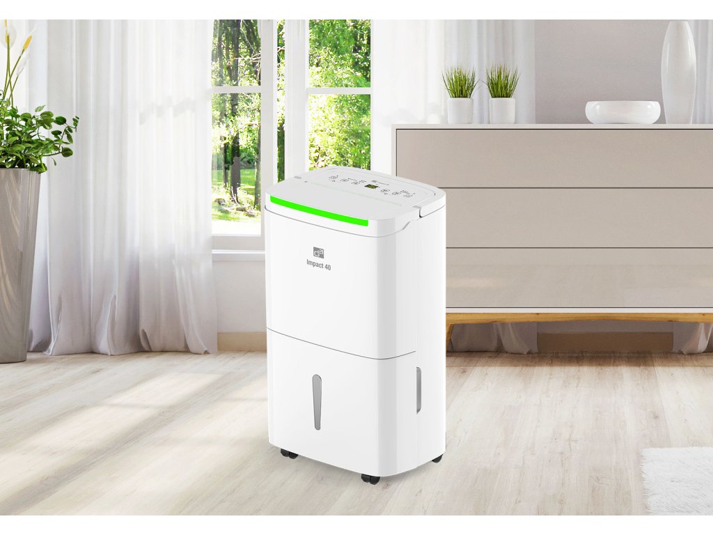 Odvlhčovač vzduchu G21 Impact 40 od české značky G21 má kapacitu 40 l za 24 hodin. Je vybaven 7l, dostatečně velkou nádržkou na kondenzát s průhledným indikátorem stavu. Pozorovat jej však ani nemusíte – odvlhčovač se při naplnění nádržky sám vypne. Odvlhčovač používá ekologické chladivo R290, které nepoškozuje ozónovou vrstvu.