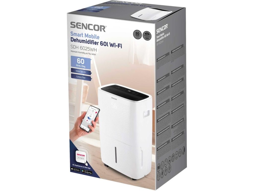Vlhkost je třeba udržet pod kontrolou. Pro domov bez plísní, pro ochranu vybavení a hlavně zdraví členů domácnosti. Tohle je přesně úkol pro náš chytrý mobilní odvlhčovač s výkonem až 60 litrů za den a ovladatelný z mobilního telefonu s aplikací Sencor HOME.
