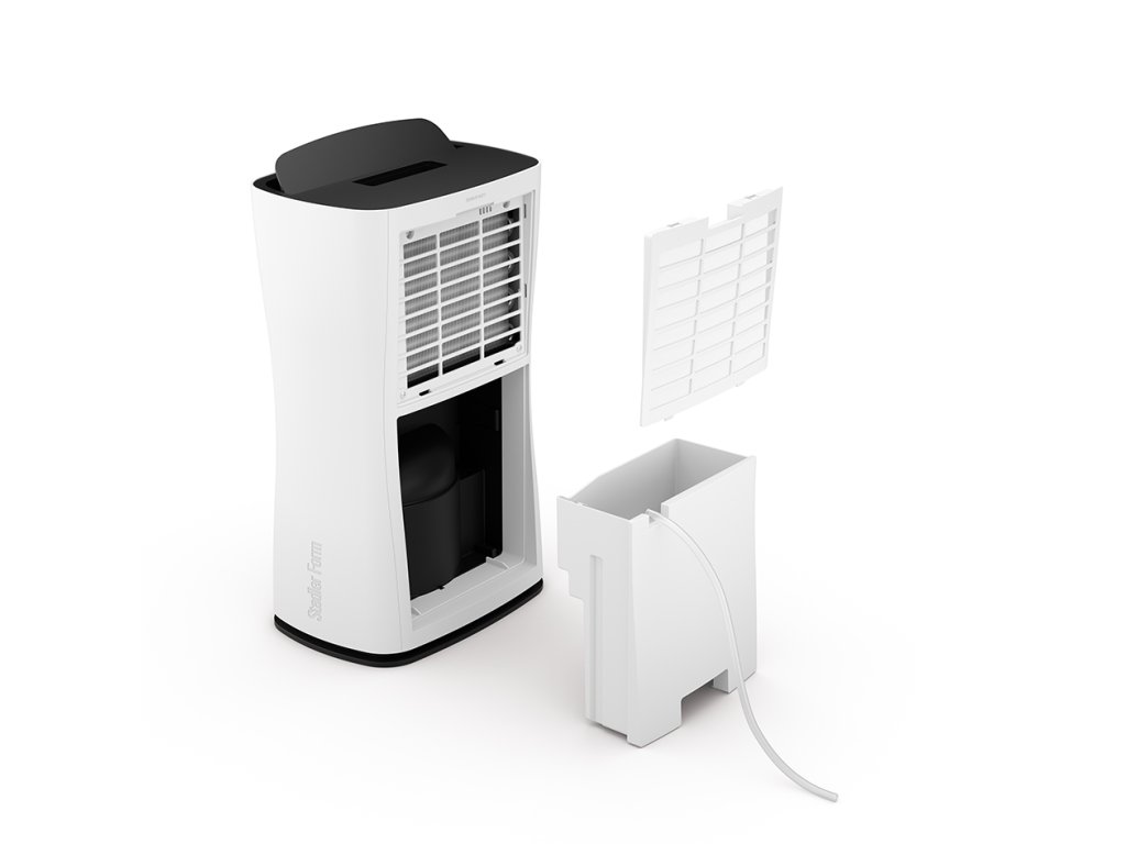 Chcete vyřešit problém s vlhkostí vzduchu v bytě nebo domě a nemáte čas neustále větrat? Pak je pro vás nový odvlhčovač Theo s automatickým provozem jako dělaný. Theo v sobě spojuje jednoduchou eleganci s dokonalým výkonem. Vlhké místnosti přímo zbožňuje, a když přebytečnou vlhkost objeví, okamžitě ji ze vzduchu odstraní. Theo poslouchá na slovo a řídí se přesně vašimi pokyny. Umí pracovat kontinuálně po dobu 1-7 hodin, a má v sobě zabudované i čidlo pro měření okolní vlhkosti. Díky hydrostatu tak můžete Theovi poručit, aby udržoval hladinu vlhkosti vzduchu na 40, 50 nebo 60 % relativní vlhkosti. Theo tak bude tiše pracovat, dokud nenaplní nádrž nebo ho sami nevypnete. Theo je sice malý vzrůstem, ale i tak dokáže spolehlivě zvládnout místnost o velikosti až 100 m3. Díky nejmodernějšímu chladivu a skvělým termodynamickým vlastnostem zvládne ze vzduchu vysát neskutečných 10 litrů vody během 24 hodin. Jeho nádrž, kterou snadno vyjmete a vylejete, má kapacitu 2,1 litru. Pokud byste potřebovali Thea nechat doma pracovat delší dobu samotného, můžete jej pomocí přiložené hadice připojit k odpadu pro trvalý odvod vody. A až ho budete chtít přenést do jiné místnosti, určitě vám přijde vhod zabudované madlo, díky kterému to zvládnete snadno jednou rukou. Theo je zkrátka věrný pomocník, kterého potřebuje každý domov s vlhkým vzduchem. Moderní chladivo Theo pracuje s nejmodernějším typem chladiva R290, které má vynikající termodynamické vlastnosti, takže provoz je velmi úsporný a efektivní. Navíc neobsahuje freony, které poškozují ozonovou vrstvu a přispívají ke změnám klimatu. Špičkové příslušenství Theo je vybaven vskutku luxusně. V jeho výbavě najdete nádobu na vodu o objemu 2,1 litru, zabudované madlo pro snadnou manipulaci nebo třeba hadici na stálý odvod vody. Prostě kompletní servis. Úžasný výkon Díky špičkovému chladivu dokáže Theo dostat ze vzduchu za 24 hodin neuvěřitelných 10 litrů vody. Proto je také určen do orpavdu velkých prostor o velikosti až 100 m3. Automatické vypnutí Theo nabízí několik provozních režimů - můžete nastavit kontinuální provoz s časovačem na 1-7 hodin provozu nebo nastavit ideální cílovou hodnotu vlhkosti (40, 50 nebo 60 % rH). Vždy si ale můžete být jisti, že se Theo po splnění úkolu automaticky vypne. Elegantní design a decentní rozměry Při pohledu na Thea je patrné, že to není jen tak nějaký odvlhčovač. Jméno a podobu mu propůjčil známý švýcarský designér a inovátor Matti Walker. Kompaktní rozměry umožňují využití Thea opravdu kdekoliv. Technická specifikace Určen pro místnosti (max.) 40 m2 / 100 m3 Výkon 10 l za 24 hodin Spotřeba energie 280 W Objem nádržky 2,1 litru Hlučnost 42 dB (A) Specifické funkce hydrostat, časovač 1–7h, zabudované madlo, chladivo R290 Standardně dodávané příslušenství český návod, hadice pro trvalý odvod kondenzátu Barva bílá Hloubka 21,6 cm Výška 51,6 cm Šířka 30,5 cm Hmotnost 11,4 kgDoplňkové parametry