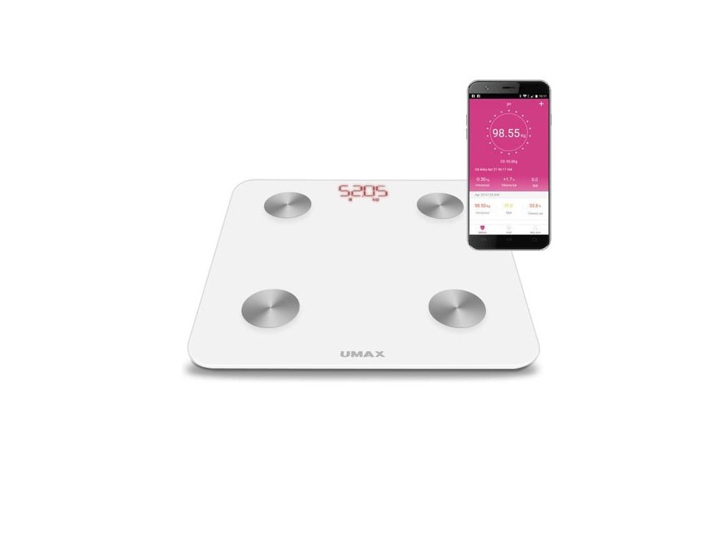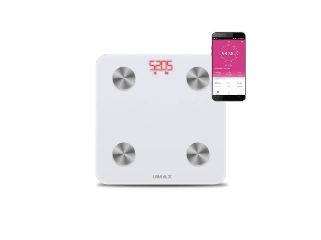 UMAX Smart Scale US20M je chytrá váha nové generace, která využívá pokročilou technologii pro sledování hmotnosti a dalších tělesných parametrů. Smart Scale analyzuje tělesné složení až 6 různých parametrů jako hmotnost, tělesný tuk, objem vody, BMI, metabolický věk nebo BMR a měří tyto parametry prostřednictvím bioelektrické impedanční analýzy (BIA). Váha je propojena bezdrátově (Bluetooth) se skvělou mobilní aplikací v češtině, což umožňuje kontrolovat naměřená data, která potřebujete k převzetí kontroly nad Vaší kondicí. Patentovaný systém měření a kvalitní použité materiály zajišťují dlouhodobou vysokou přesnost měření.Sledujte své tělo - 6 tělesných parametrů