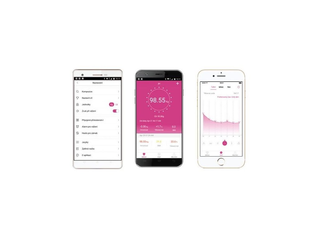 Mobilní aplikace pro iOS a Android je kompletně v češtine a zajišťuje nejen aktuální výsledky měření, ale také jejich historii. Při vážení jsou výsledky bezdrátově přeneseny do aplikace. Data jsou zálohována pod Vaším účtem v cloudu, čímž je zaručeno, že o ně nepřijdete.