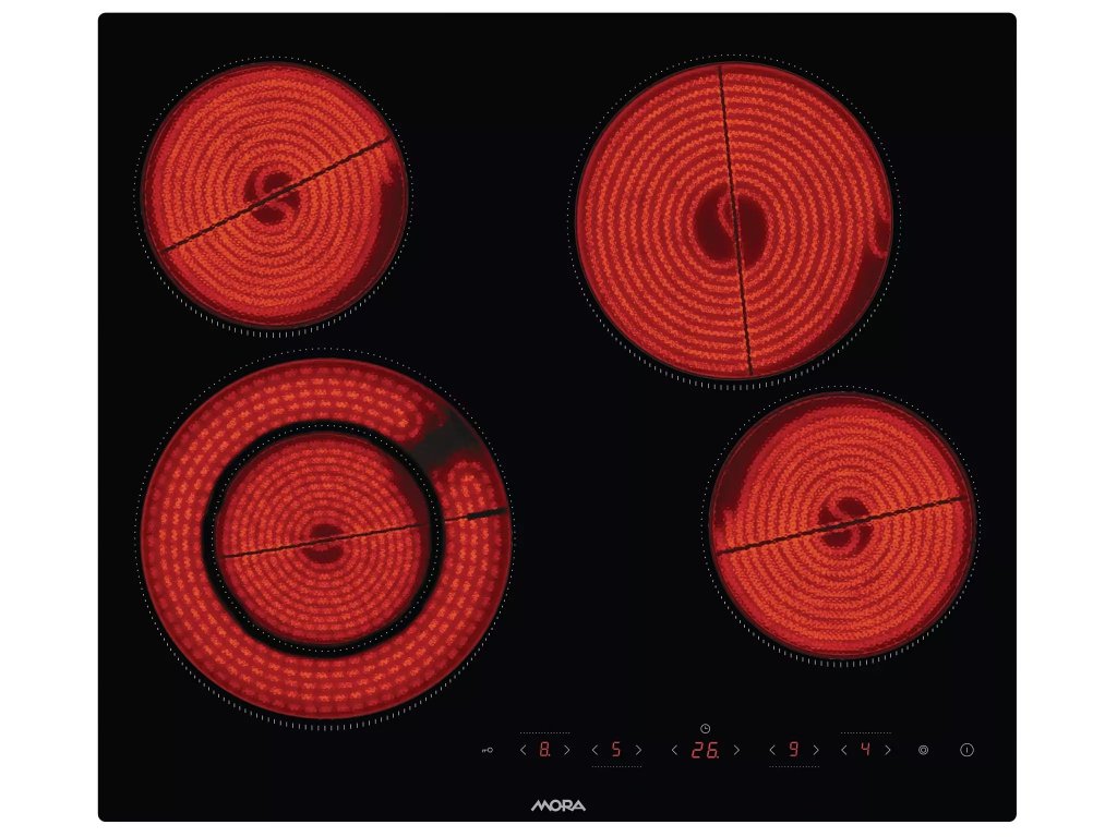 4 Hi-Light rychlé varné zóny desky MORA umožňují rychlé vaření v nádobí různých materiálů i velikostí. Vaše voda na těstoviny, ohřátí polévky či jakýkoliv pokrm zvládnete připravit na těchto zónách v krátkém čase a za stále efektivních podmínek provozu.