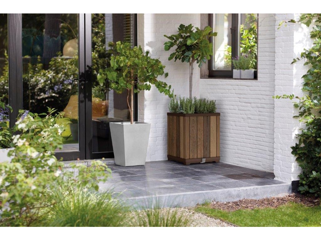 Díky unikátní technologii DecoCoat odolá květináč nepříznivým povětrnostním vlivům, rzi a hnilobě. Zároveň si zachová svou barvu. I po letech tedy vypadá, jako byste ho právě vyndali z obalu a smontovali. Textura stěn připomíná skutečné dřevo. Navíc je nenáročný na údržbu.