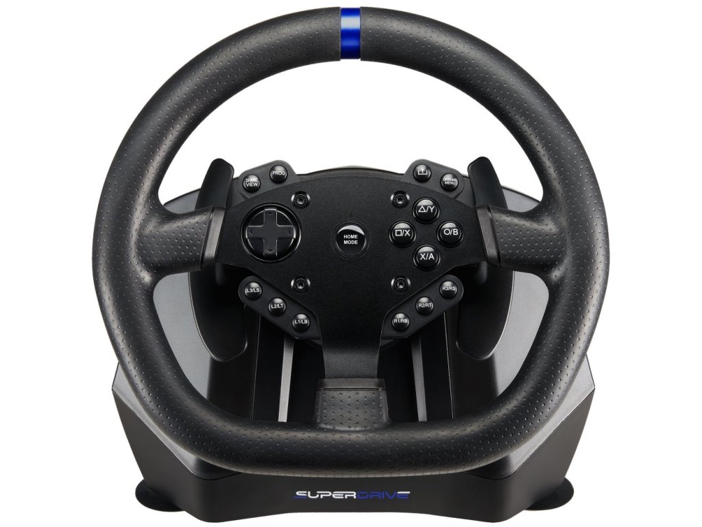 SUPERDRIVE SV950Volant s pedály pro PS4, Xbox One, Xbox X, Xbox S a PC. Volant SV950 nabízí až 900° úhel otáčení, který se přizpůsobí vašim jízdním návykům a poskytuje tak věrný závodní zážitek. Je vybaven řadicí pákou, duálním vibračním motorem a také protiskluzovým systémem pedálů. Je plně programovatelný a nabízí 3 úrovně citlivosti. Volant je vybaven přísavkami a lze jej snadno připevnit na rovný povrch. Zajisté potěší také konektor pro připojení sluchátek.