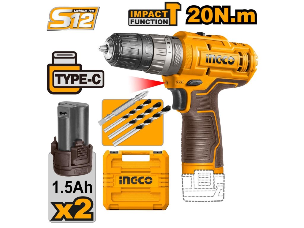 Ingco CIDLI12202E AKU šroubovák s příklepem vč. 2ks baterie Nevíte kde uplatnit Benefity obecně, zeptej se info@megabike-cyklo.cz
