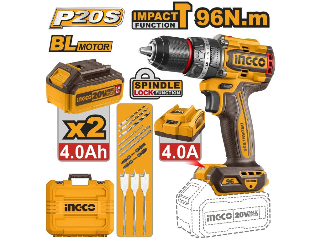 Bezuhlíková příklepová vrtačka 20 V s vysokým točivým momentem a bohatým příslušenstvímPopis produktu: