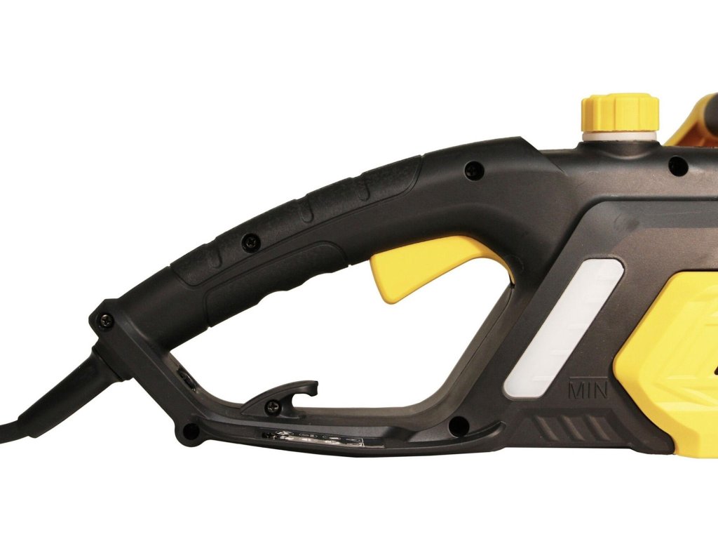 Elektrická řetězová pila Proteco s výkonným motorem 2 400 W a řídící elektronikou pro plynulý náběh do konstantních pracovních otáček. Konstrukce pily nabízí sadu standartních bezpečnostních prvků (doběhovou brzdu, bezpečnostní brzdu) a automatické mazání řetězu. Řetěz pily má 57 zubů. Pila má dále FASTFIX - výměnu a napínání řetězu bez použití nástrojů a SOFTSTART - omezení rozběhového proudu pro šetrné uvedení stroje do provozu a pozvolný náběh do pracovních otáček. Na pile je přehledný olejoznak pro kontrolu stavu oleje v nádržce. Výhody a charakteristické znaky - Délka pilové lišty 400 mm - Příkon 2 400 W - Fastfix a Softstart - Kontrola hladiny oleje - Automatické mazání řetězu - 57 zubů - Otáčky motoru 7 000 ot./min. - Objem olejové nádržky 340 ml - Bezpečnostní brzda řetězu a doběhová brzda - Přehledný olejoznak pro kontrolu stavu oleje v nádržce - Omezení rozběhového proudu - Pevný ozubený doraz pro oporu pily o řezaný materiál - Beznástrojová výměna řetězu Součástí balení je: - Vodící lišta - ŘetězPři platbě penězi je možné dostat zajímavou nabídku neboli akční cenu a tu Vám rádi uděláme když napíšete na info@megabike-cyklo.cz