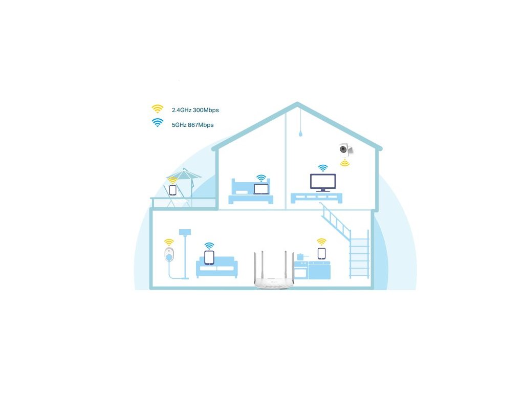 Archer C50 nabízí možnost přenosu v obou pásmech 2,4 GHz a 5 GHz a poskytuje tak výkonné bezdrátového připojení. Simultánní duální pásmo nabízí flexibilitu dvou vyhrazených sítí – několikanásobnou šířku pásma pro vaše potřeby. Jednoduché úkoly, jako jsou odesílání e-mailů nebo surfování na internetu, mohou být zajišťovány v pásmu 2,4 GHz, zatímco úkoly náročné na šířku pásma, jako jsou on-line hraní her nebo streamování HD videa, mohou být provozovány v pásmu 5 GHz – vše najednou.