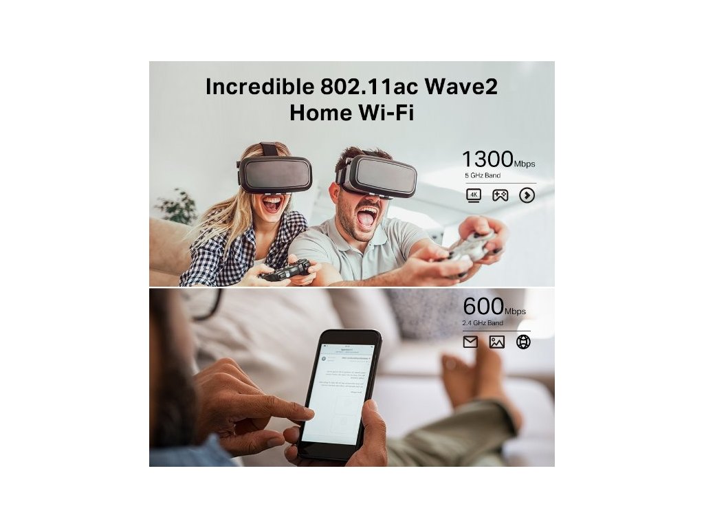 Procházet internet nebo pracovat s emaily můžete na 2.4 GHz maximální rychlostí až 600 Mbps, zatímco streamovat videa ve vysokém rozlišení nebo hrát online hry můžete v pásmu 5 GHz rychlostí až 1300 Mbps!