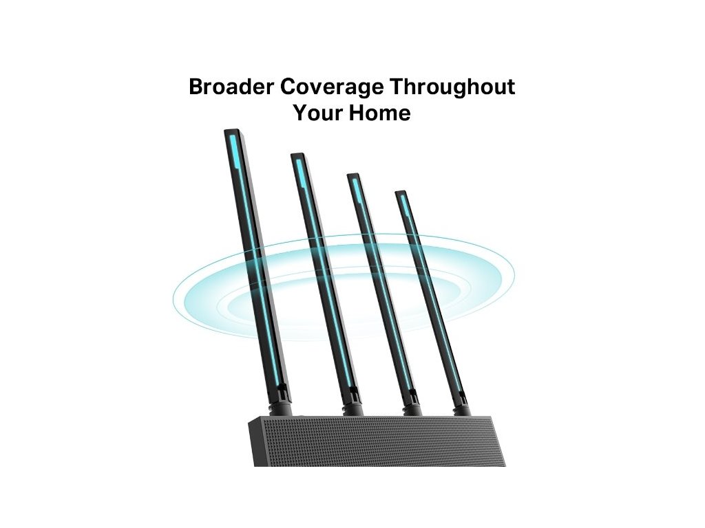 Router se čtyřmi externími anténami podporuje technologii Beamforming, která detekuje připojená zařízení a dokáže koncentrovat vysílaný signál potřebným směrem. Díky tomu si tak můžete užívat bezdrátové pokrytí ve větších vzdálenostech.