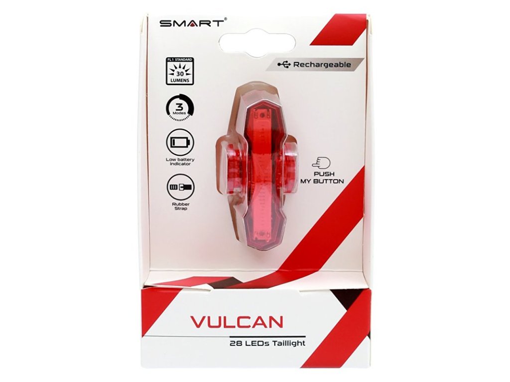 Kompaktní a nejuniverzálnější voděodolná zadní blikačka SMART VULCAN s LED čipem s 28 ks LED.Vhodné pro MTB, turistiku, sport i městská a turistická kola.