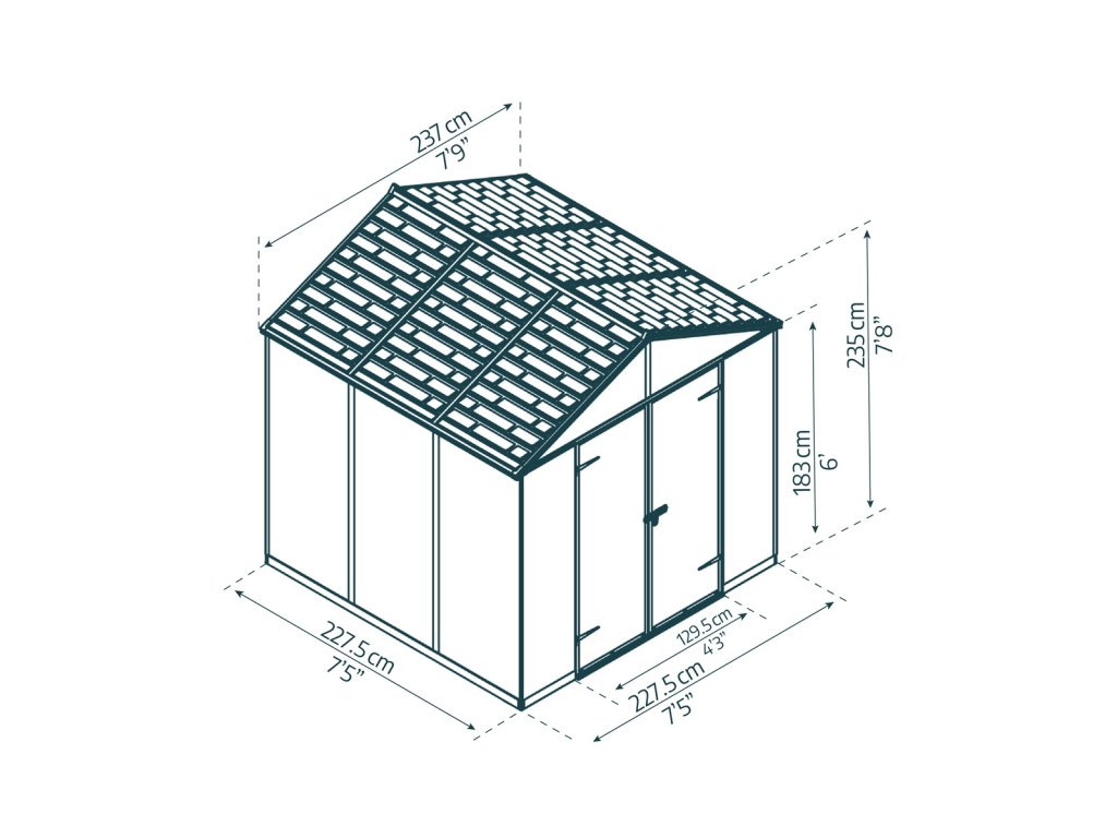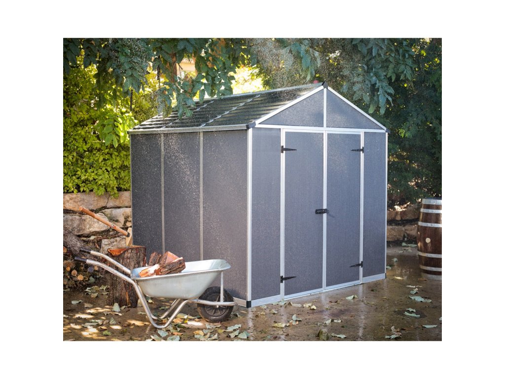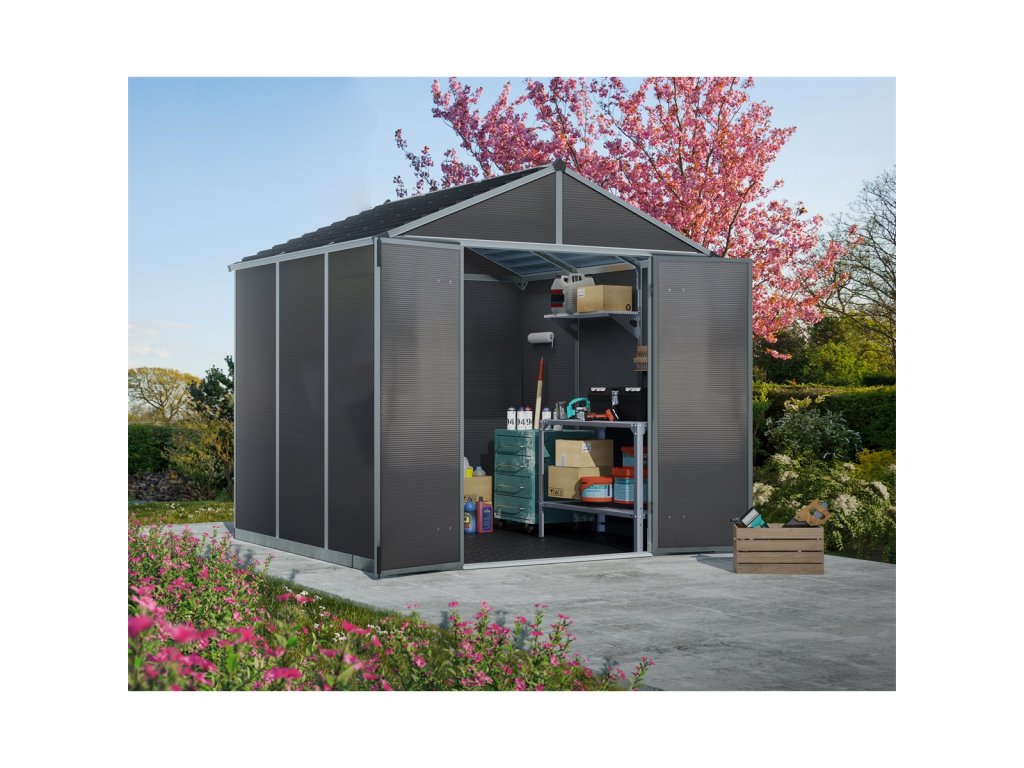 Rubicon 8' x 8' antracit - heavy duty prostorný zahradní domek Prostorný, odolný a bezúdržbový zahradní domek Základní domek lze mít ve dvou rozměrových variantách, a to buď 228 x 237 cm nebo 304 x 237 cm Domek je vyroben ze špičkového vyztuženého polykarbonátu se 100% UV ochranou, takže materiál (na rozdíl od levných domků z polyethylenu PE) nekřehne ani nemění barvu a bez problémů odolá změnám teplot, dešti, přívalům sněhu nebo kroupám po mnoho let. Zesílená konstrukce z hliníkových profilů nikdy nezrezaví Dodává se s protiskluzovou podlahou, takže věci v domku jsou chráněny před vlhkostí, vodou apod. Unikátní střecha z polykarbonátu propouštějícího světlo příjemně prosvětluje domek zevnitř Polykarbonát je bezúdržbový, prakticky nerozbitný a snadno se čistí. Žádné starosti s nátěrem, hnilobou, dřevokazným hmyzem, vlhkostí či rzí. Široké (cca 129 cm) dvojité zamykatelné dveře v hliníkovém rámu s nízkým prahem a ocelovými panty Možnost vybavit LED osvětlením a poličkami Skylight Shelf, které se jednoduše montují do drážek rámu domku. Standardně dva větrací otvory, integrované okapy, speciální vnitřní kovové výztuhy Snadné sestavení svépomocí, panely se do konstrukce nasouvají a není tak potřeba stovky šroubků, jako u jiných konstrukcí Ideální pro uložení nářadí, nábytku, grilu, sekačky a dalšího zahradního náčiní Krásná moderní tmavě antracitová barva Materiály domku jsou 100% recyklovatelné Sněhová odolnost : 80 kg/m2 Odolnost proti větru : 105 km/hod Prostupnost světla : Střecha – 10% Pevný hliníkový rám s integrovanými okapy Střecha s praktickým prosvětlením interiéru Přídavné kovové výztuhy pro extra pevnost Protiskluzová podlaha Prostorný vstup s nízkým prahem Uzamykatelné dveře Kotvící systém pro zvýšení stability 100 % UV odolný, 10 mm široký, zesílený polykarbonátPři platbě penězi je možné dostat zajímavou nabídku neboli akční cenu a tu Vám rádi uděláme když napíšete na info@megabike-cyklo.cz