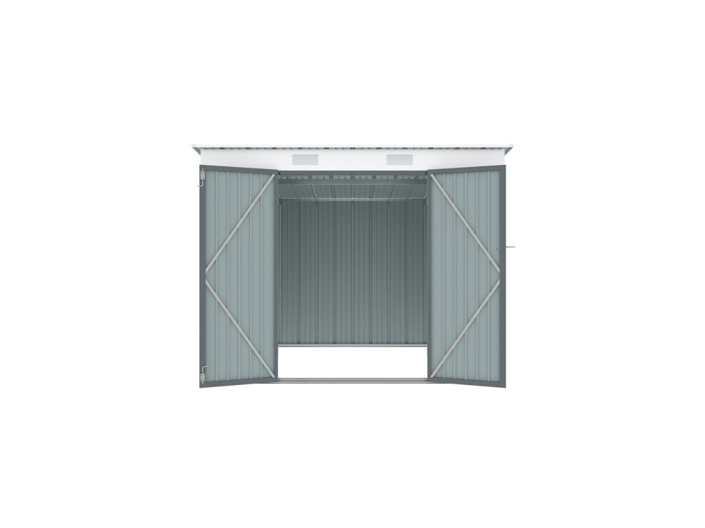 RMSP 6x8 Anthracite - zahradní domek kovový 2,4 x 1,8 m s pultovou střechou antracit praktický zahradní domek s rovnou pultovou střechou ideální pro uskladnění zahradní techniky a nářadí, grilovacích potřeb, zahradního nábytku, sportovního náčiní, hraček atd. domek je možno postavit svépomocí (doporučujeme 2 osoby), ideálně na pevný povrch (betonová deska, dlažba apod.) žárové zinkování rámu i profilovaných ocelových plechů spolu s kvalitní ochranou pomocí práškového nátěru jsou zárukou dlouhé životnosti a minimálních nároků na údržbu vyztužení střechy pro zvýšenou odolnost vůči větru i sněhu široké dvoudílné křídlové dveře s petlicí je možné bezpečně uzamknout pomocí standardně dodávaného zámku 2 větrací otvory pro dobré proudění vzduchu a ochranu před vlhkostí Případné bezpečnostní pokyny, výstrahy a upozornění jsou součástí návodu k obsluze, který je k dispozici v sekci KE STAŽENÍ. Kontaktní údaje výrobce / dovozce / zplnomocněného zástupce výrobce v EU: GARLAND distributor, s.r.o. Šturmova 1307, 50601 Jičín, Czech Republic email: garland@garland.czPři platbě penězi je možné dostat zajímavou nabídku neboli akční cenu a tu Vám rádi uděláme když napíšete na info@megabike-cyklo.cz