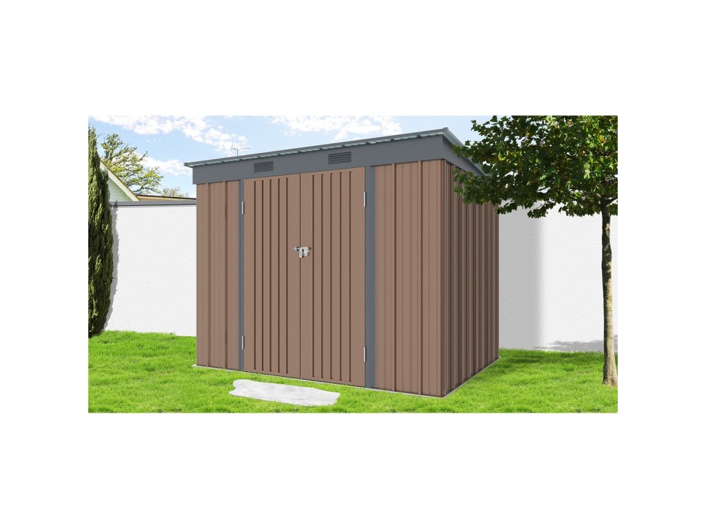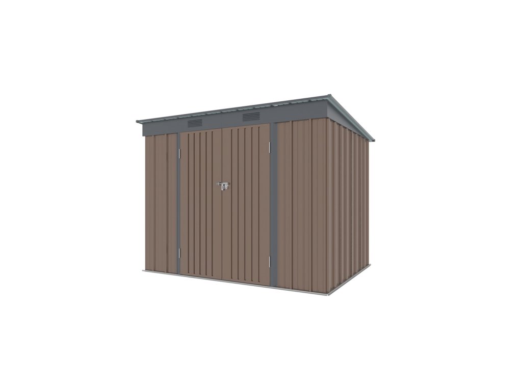 RMSP 6x8 Brown - zahradní domek kovový 2,4 x 1,8 m s pultovou střechou hnědý praktický zahradní domek s rovnou pultovou střechou ideální pro uskladnění zahradní techniky a nářadí, grilovacích potřeb, zahradního nábytku, sportovního náčiní, hraček atd. domek je možno postavit svépomocí (doporučujeme 2 osoby), ideálně na pevný povrch (betonová deska, dlažba apod.) žárové zinkování rámu i profilovaných ocelových plechů spolu s kvalitní ochranou pomocí práškového nátěru jsou zárukou dlouhé životnosti a minimálních nároků na údržbu vyztužení střechy pro zvýšenou odolnost vůči větru i sněhu široké dvoudílné křídlové dveře s petlicí je možné bezpečně uzamknout pomocí standardně dodávaného zámku 2 větrací otvory pro dobré proudění vzduchu a ochranu před vlhkostí moderní vzhled a elegantně působící barevná kombinace šedé s tradiční hnědou barvou Případné bezpečnostní pokyny, výstrahy a upozornění jsou součástí návodu k obsluze, který je k dispozici v sekci KE STAŽENÍ. Kontaktní údaje výrobce / dovozce / zplnomocněného zástupce výrobce v EU: GARLAND distributor, s.r.o. Šturmova 1307, 50601 Jičín, Czech Republic email: garland@garland.czPři platbě penězi je možné dostat zajímavou nabídku neboli akční cenu a tu Vám rádi uděláme když napíšete na info@megabike-cyklo.cz